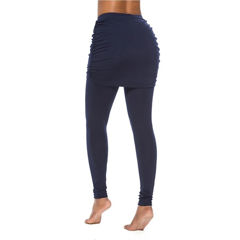 Леггинсы из двух частей, облегающие леггинсы, женские брюки, панталоны, плиссированная юбка на бедрах, Женская однотонная сумка, боковые брюки