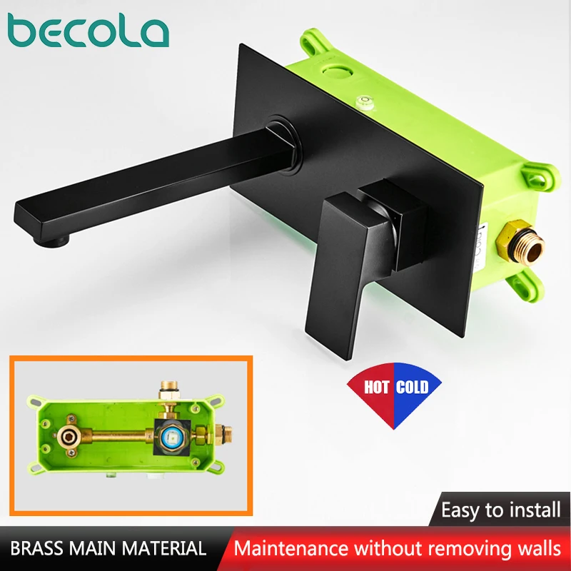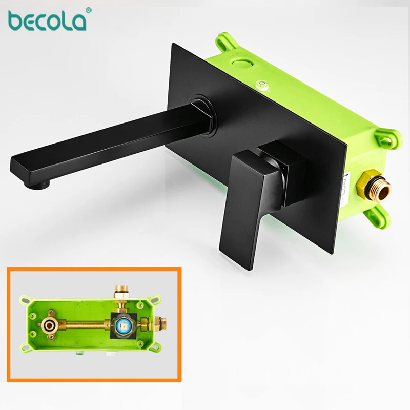 Черный матовый черный латунный настенный смеситель BECOLA LT-320RB для раковины, кран с одной ручкой для горячей и холодной воды