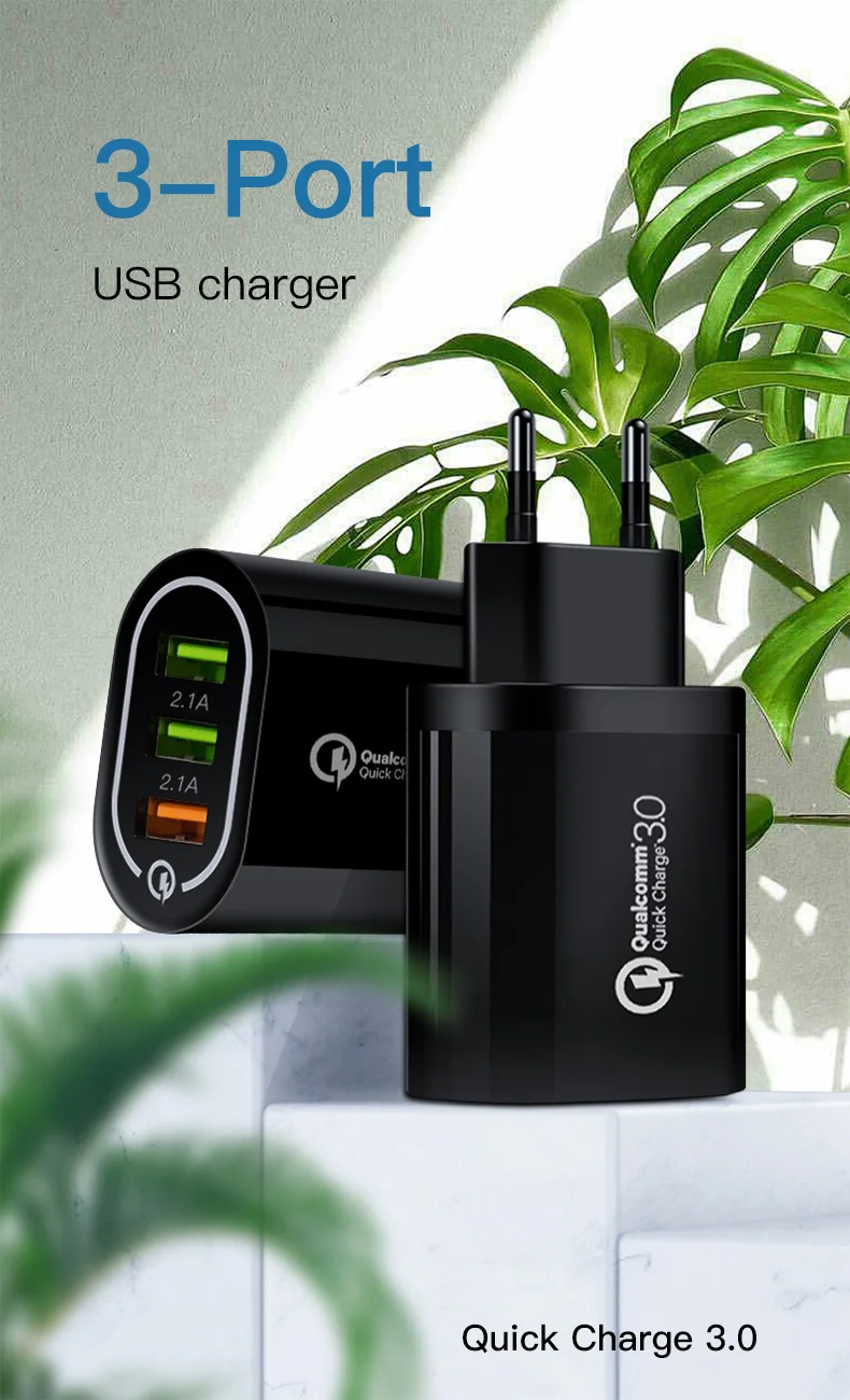 Настенное зарядное устройство с 3 Usb-портами, для iphone 6, 7, 8, ...