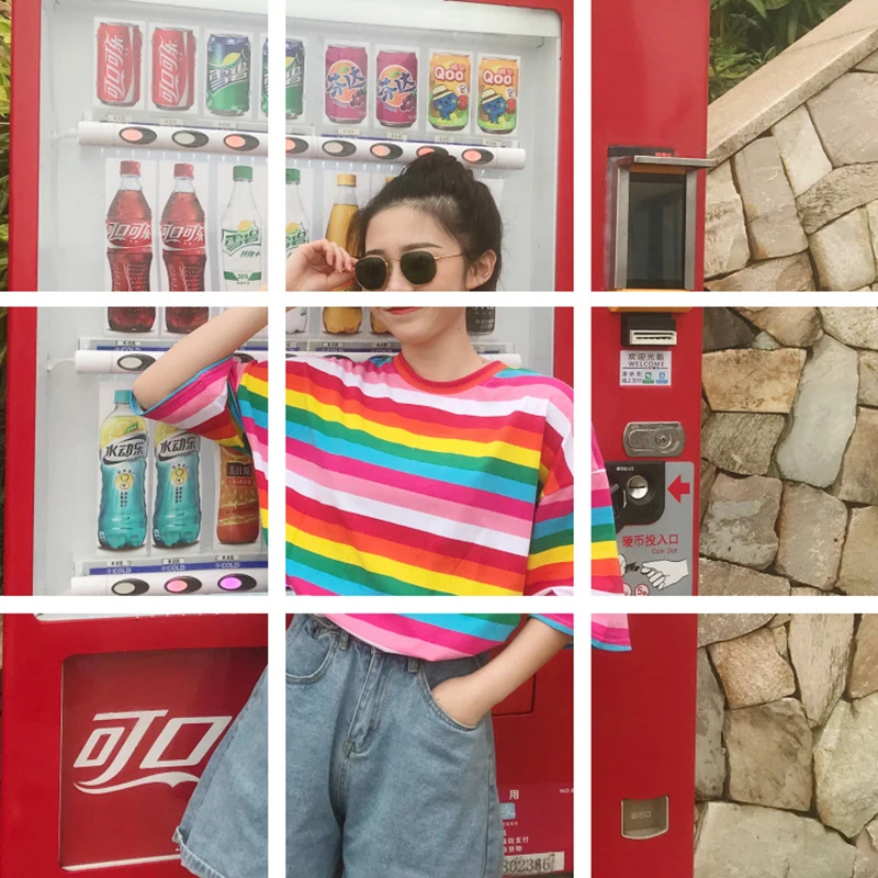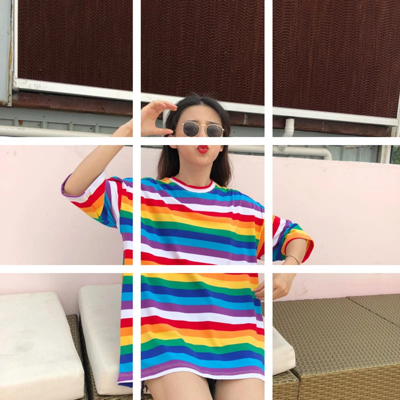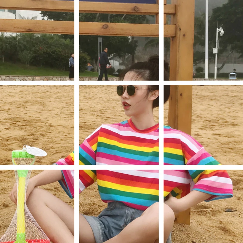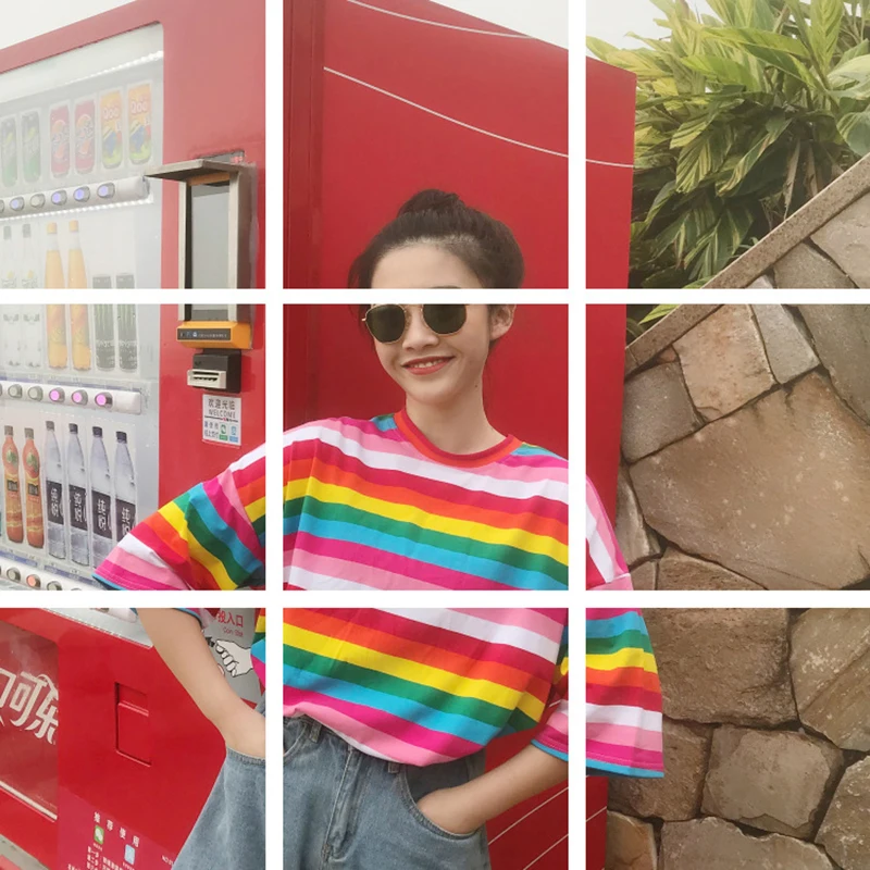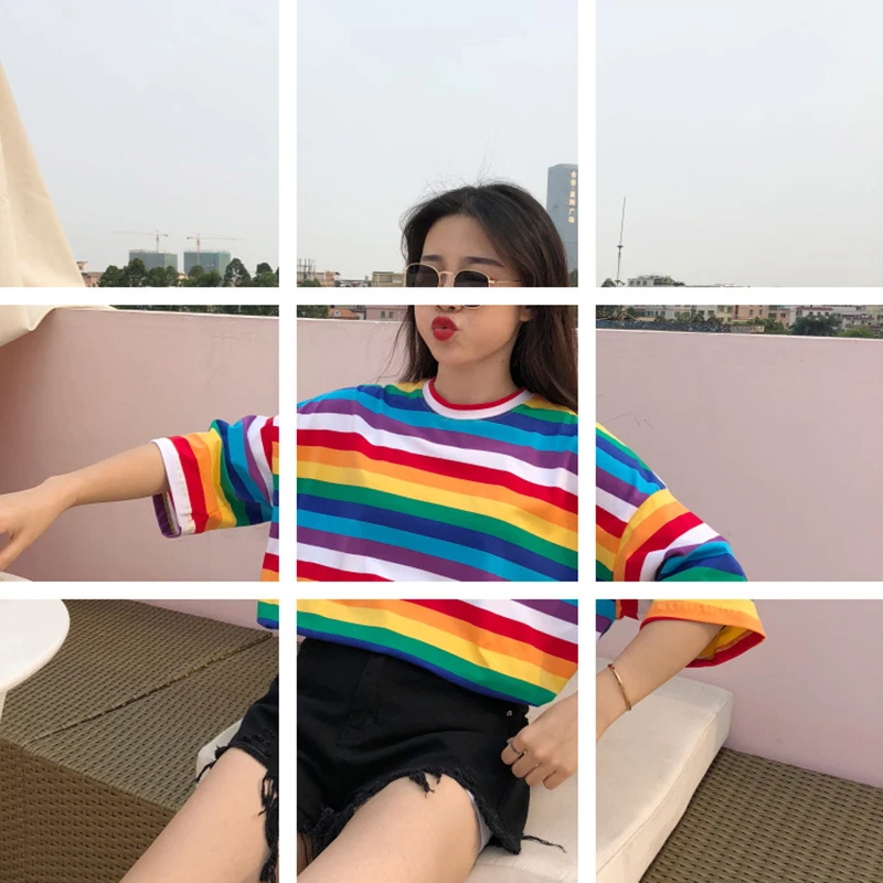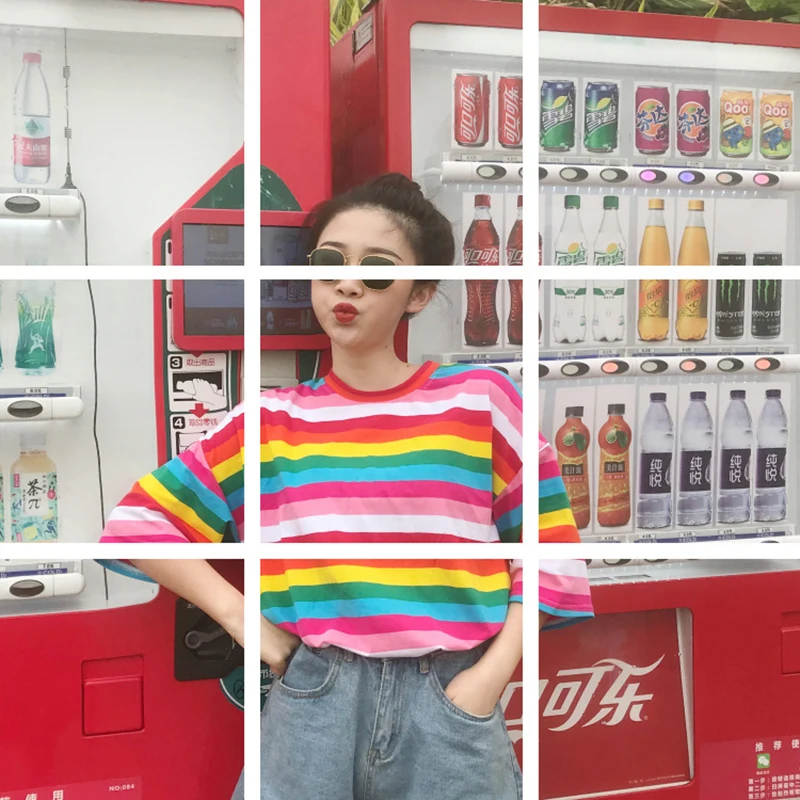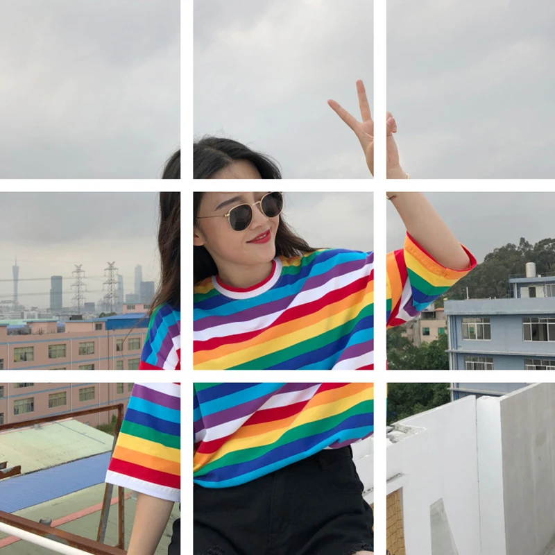 Футболка женская, в радужную полоску, с круглым вырезом, в стиле Харадзюку