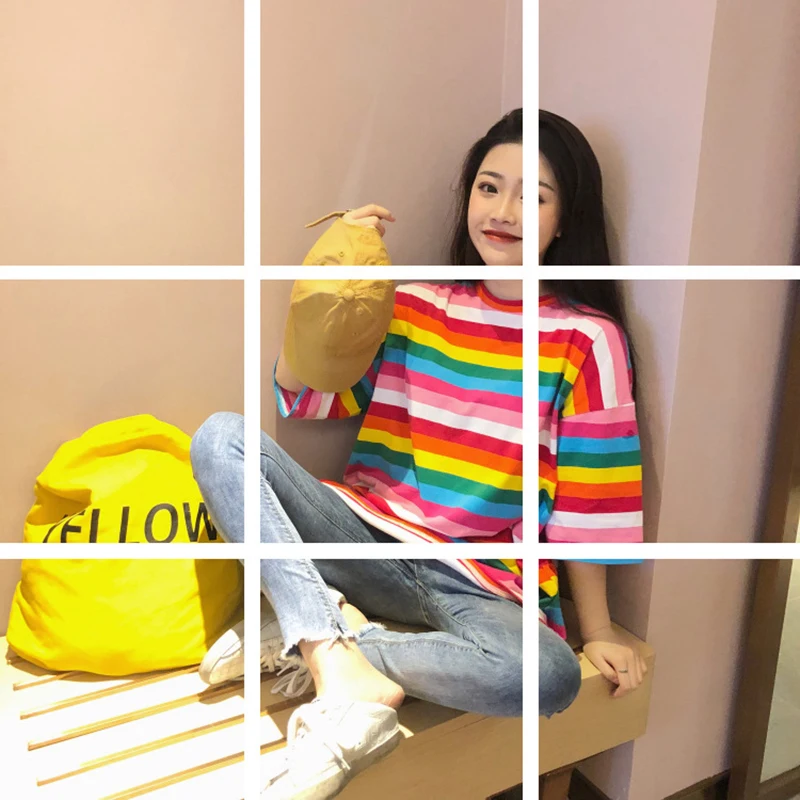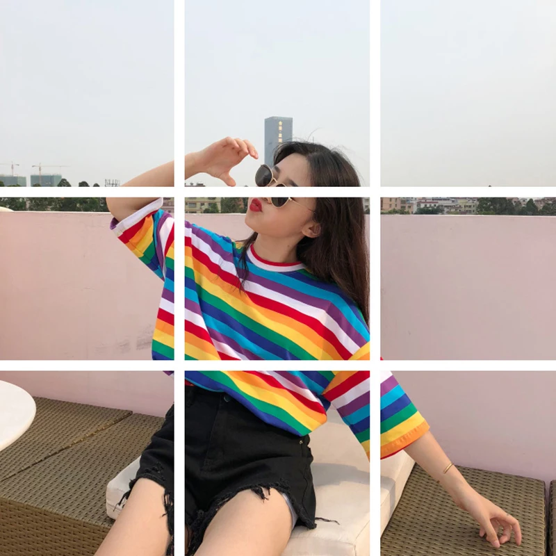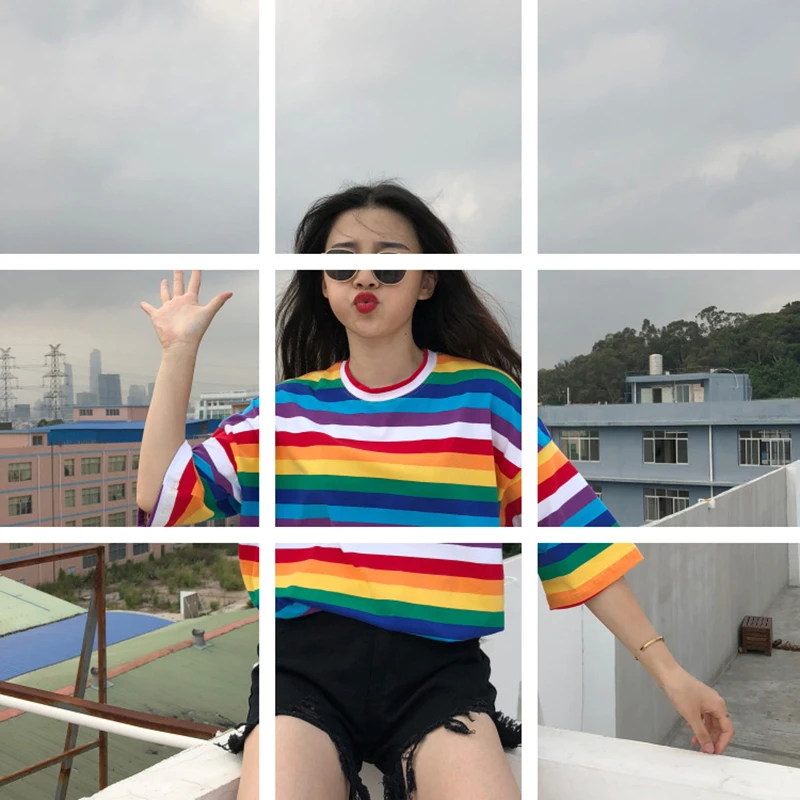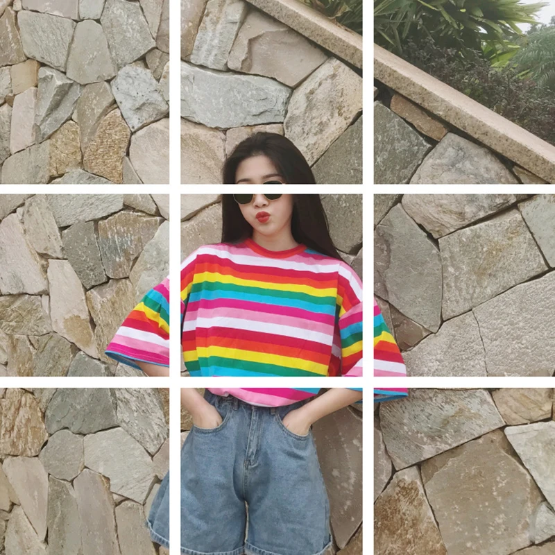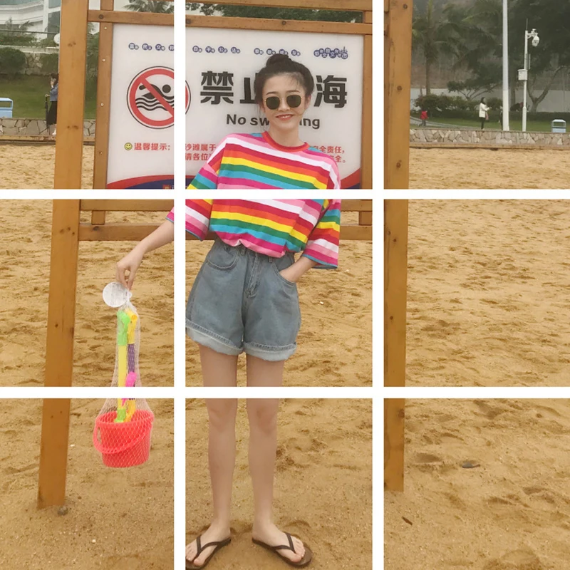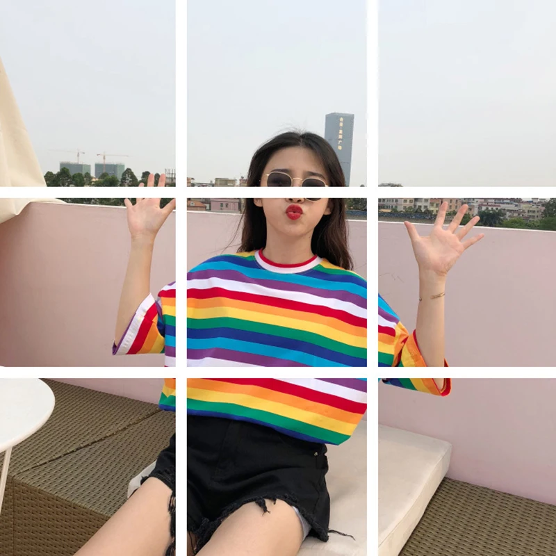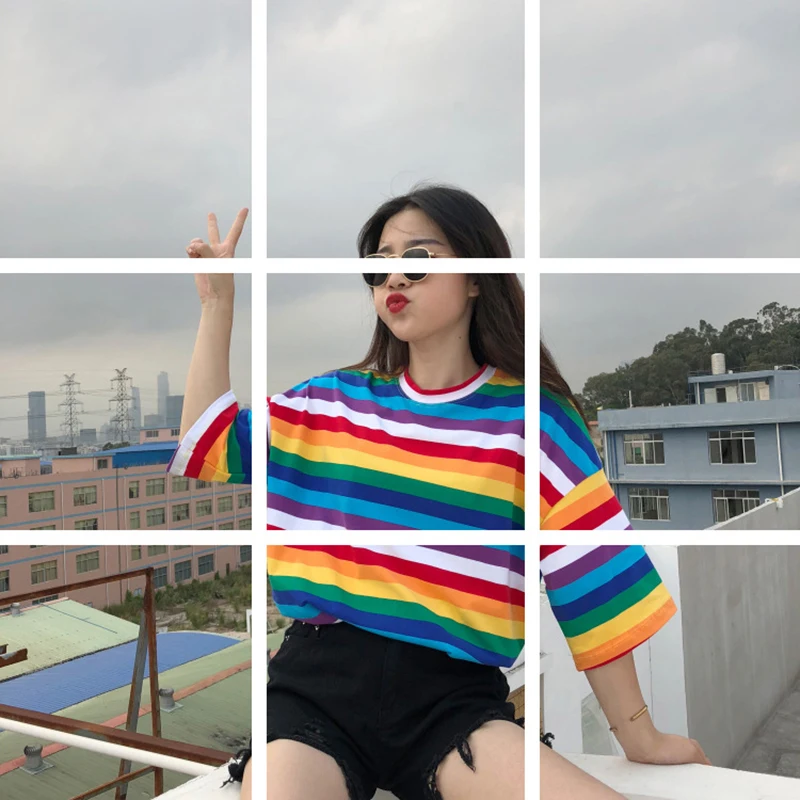 Футболка женская, в радужную полоску, с круглым вырезом, в стиле Харадзюку
