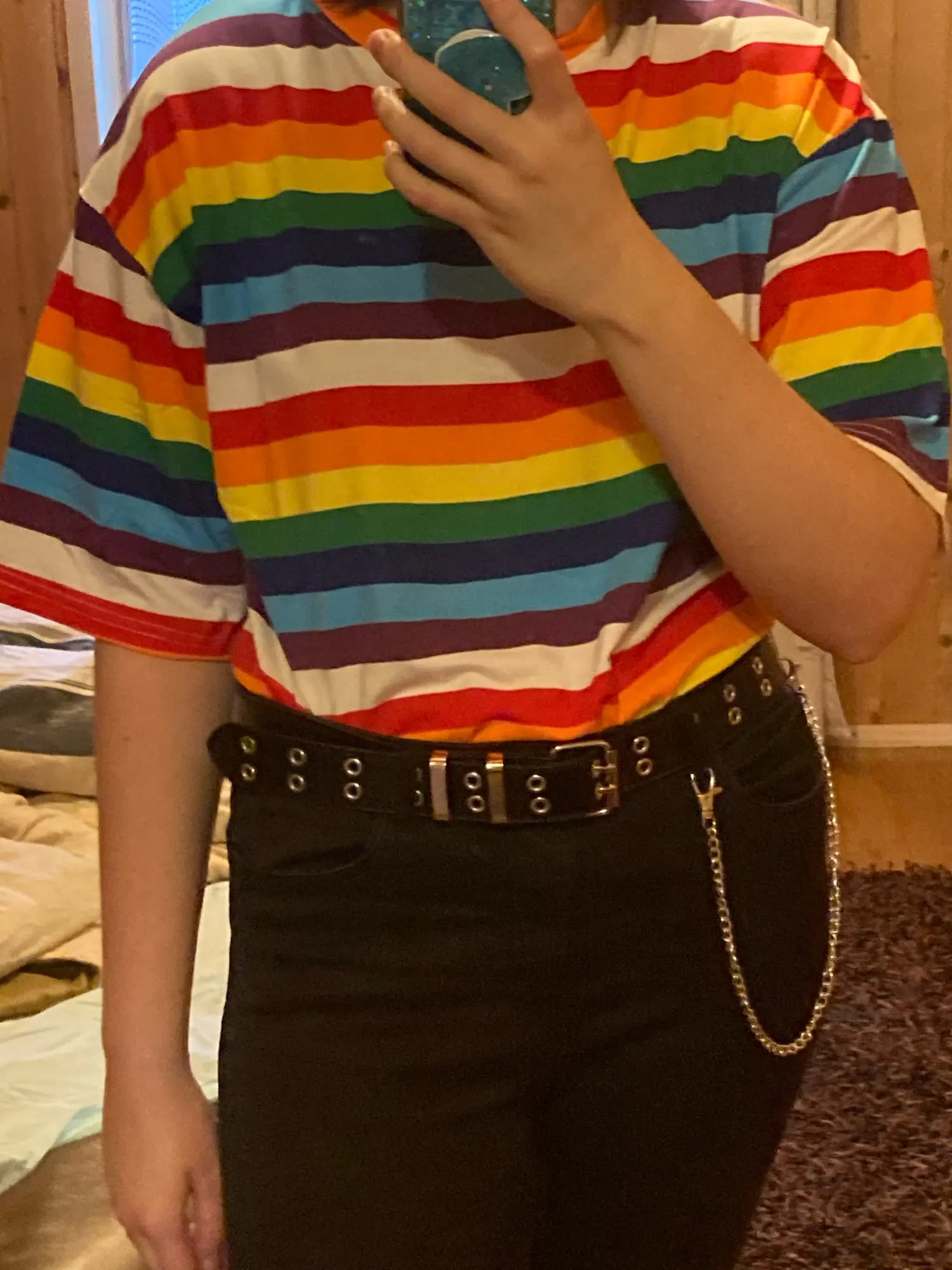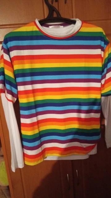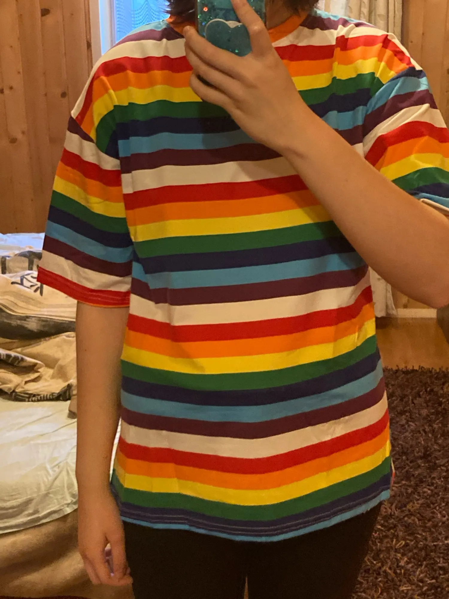 Очень радужная и великолепная футболка, быстро дошла, размер подошёл, спасибо!!!