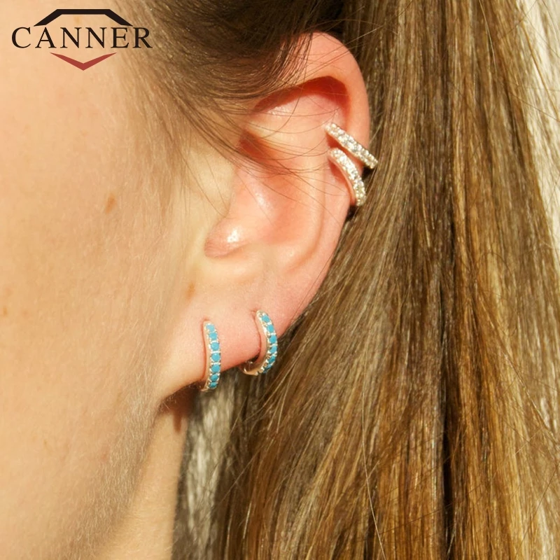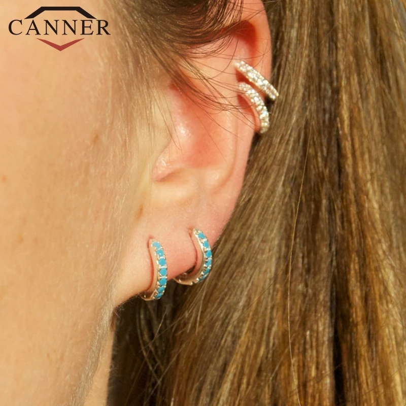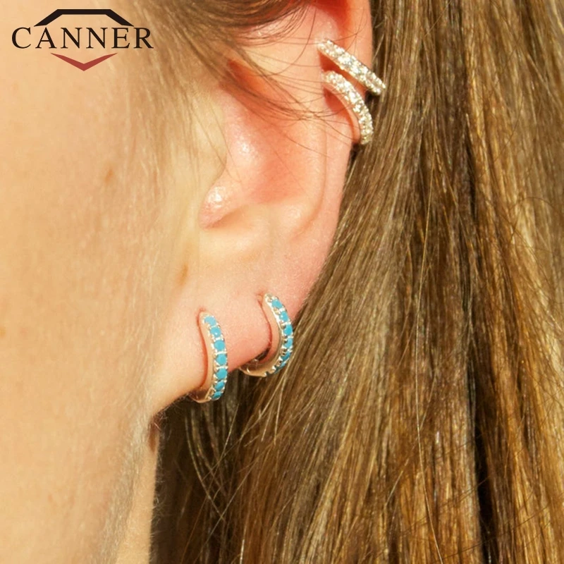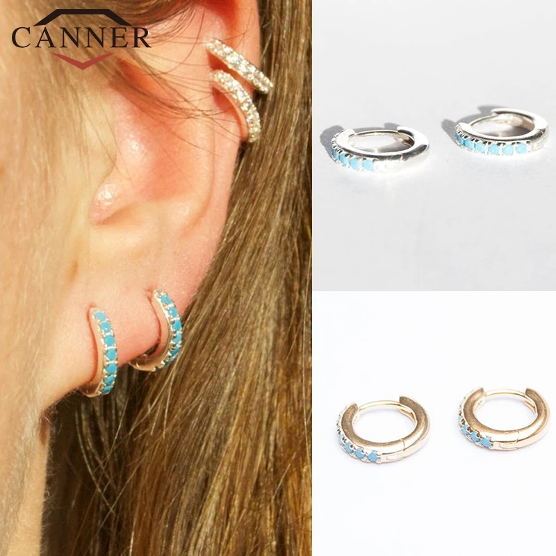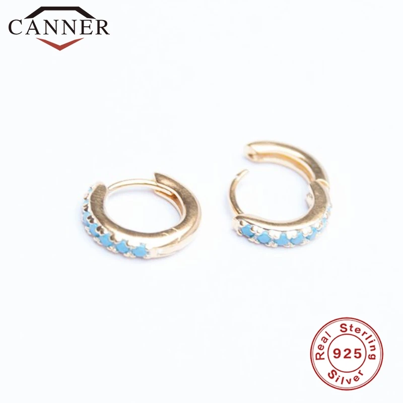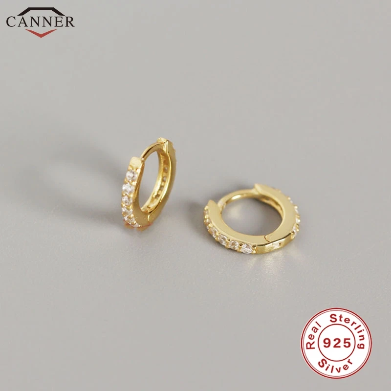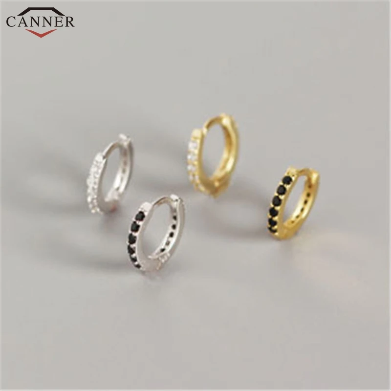 Женские маленькие серьги-кольца CANNER, круглые серьги из стерлингового серебра 925 пробы с золотым цирконием, ювелирные изделия H40, 2019
