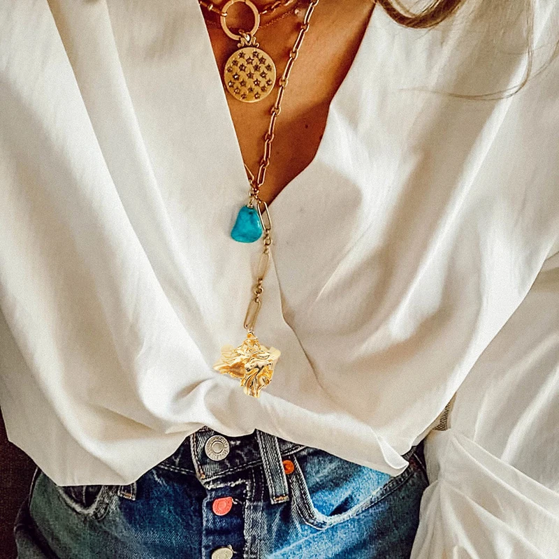 2019 Ретро винтажный стиль Серебряный цвет Длинные круглые ожерелья...