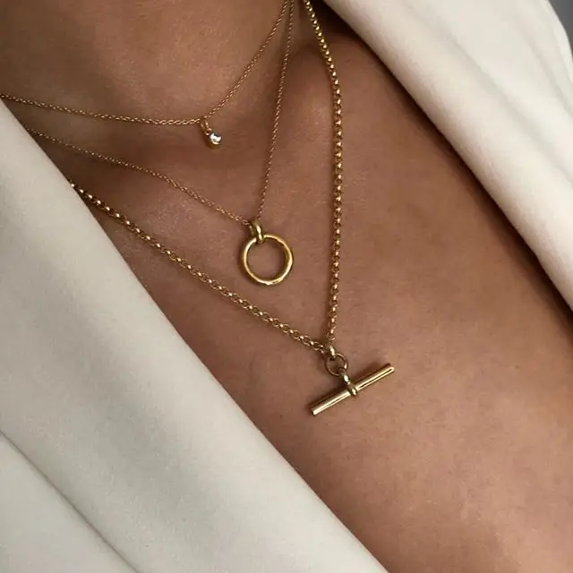 Маленькая золотая t-образная подвеска на цепочке, ожерелье без воротника, Женское Ожерелье