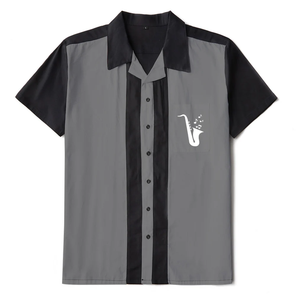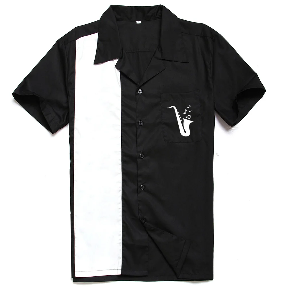 Мужская музыкальная рубашка в стиле ретро с коротким рукавом