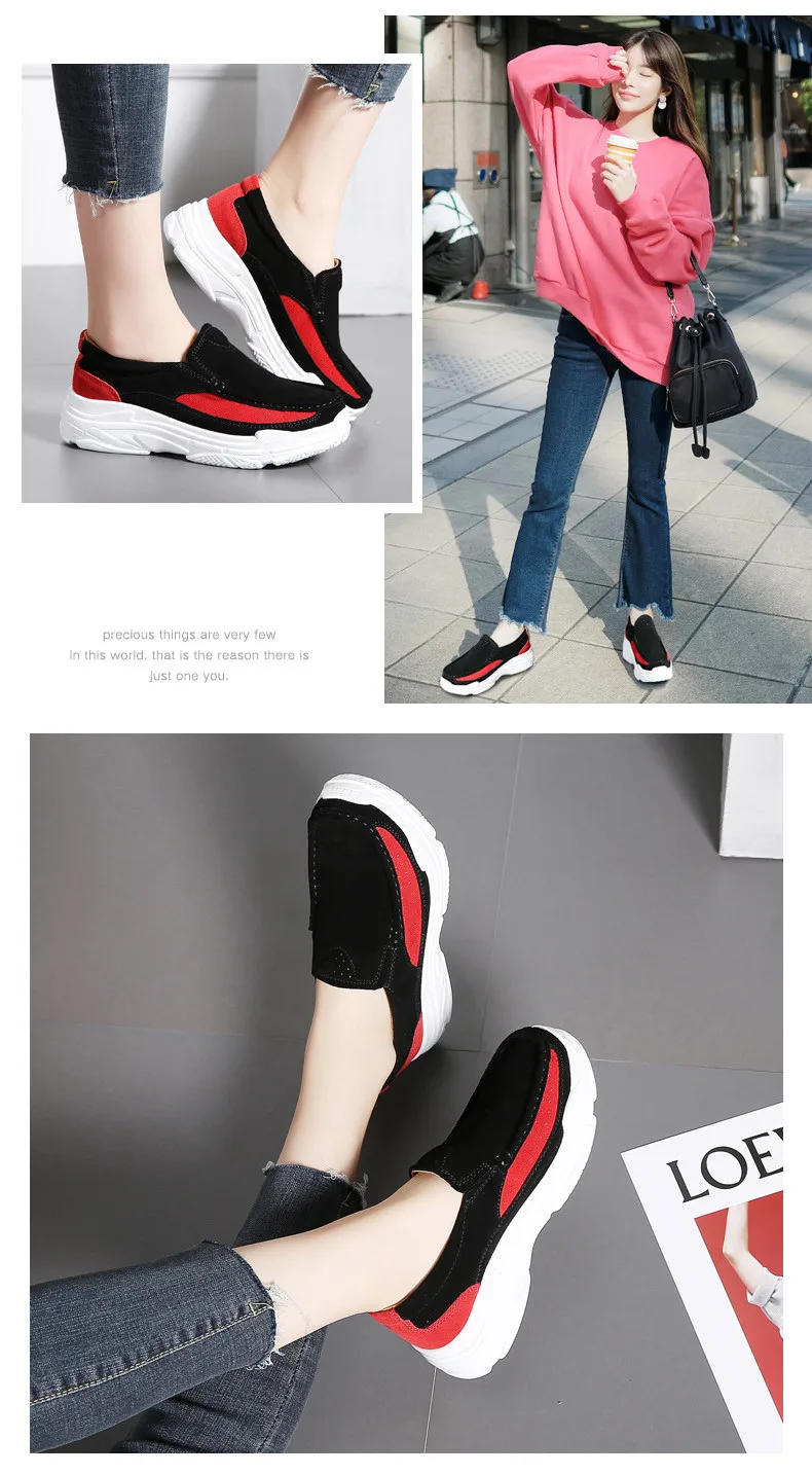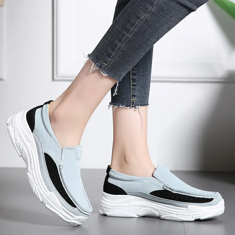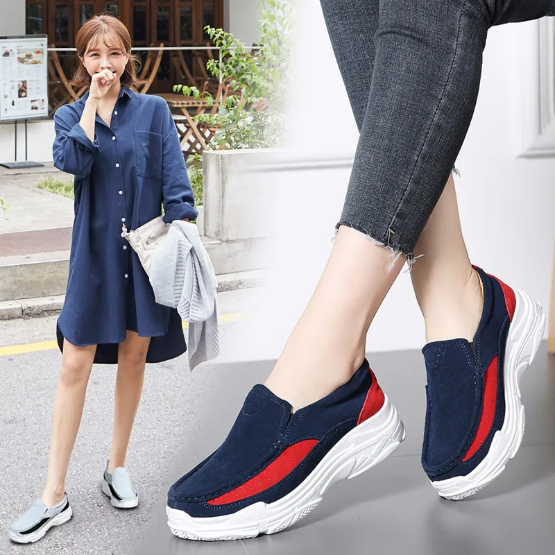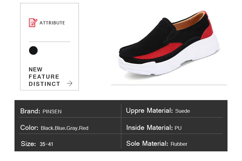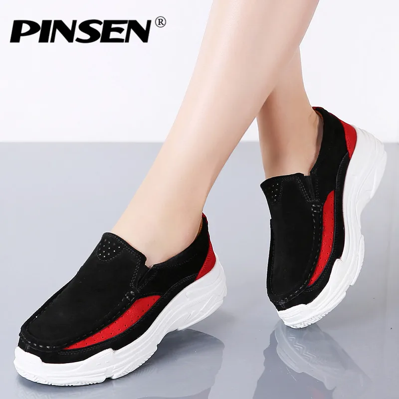 Женские замшевые кроссовки PINSEN, темно-синие повседневные туфли на платформе, без застежки, на толстой подошве, криперы, Мокасины, осень 2022