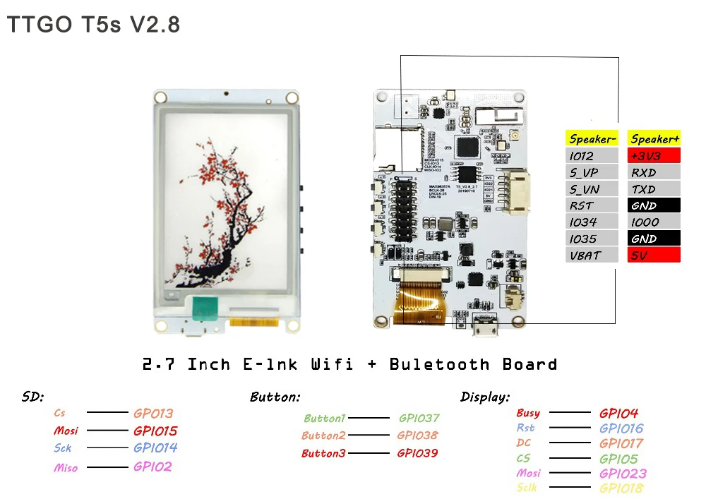 1 X TTGO T5s V2.8 2,7 дюймовКрасный, черный, белыйМодуль ePaper ESP32