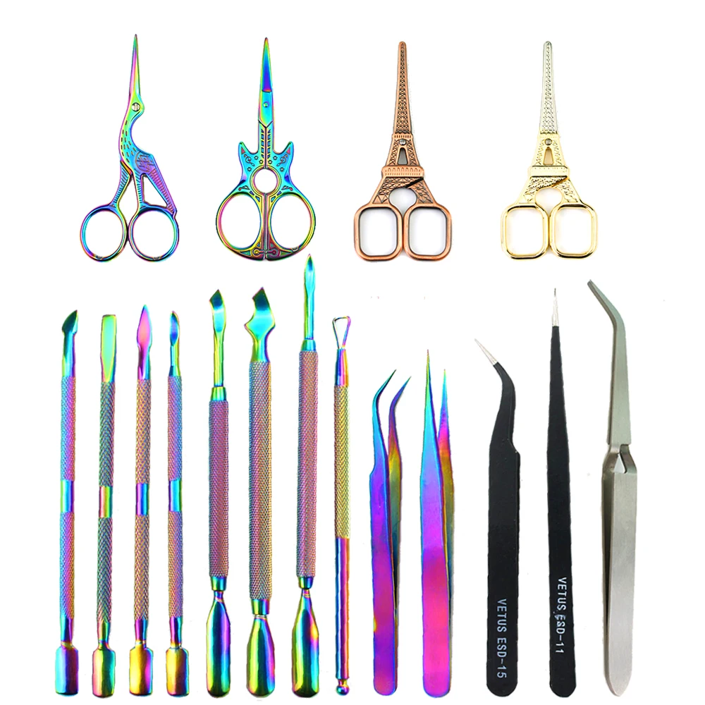 Ножницы для удаления кутикулы из нержавеющей стали, радужные пинцеты для черных ресниц, УФ-гель, инструменты для удаления кутикулы