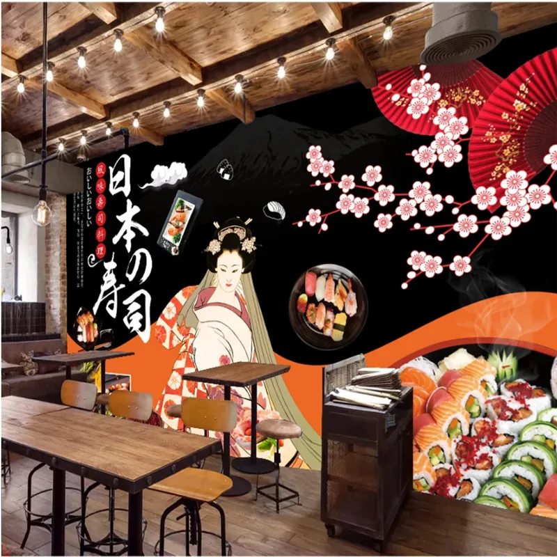 Пользовательская японская настенная бумага гейши, 3D кухня, магазин...