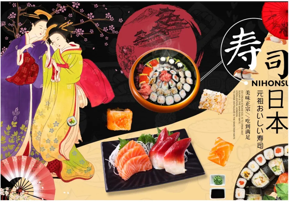 Ностальгическая мультяшная японская кухня Настенная бумага 3D суши ...