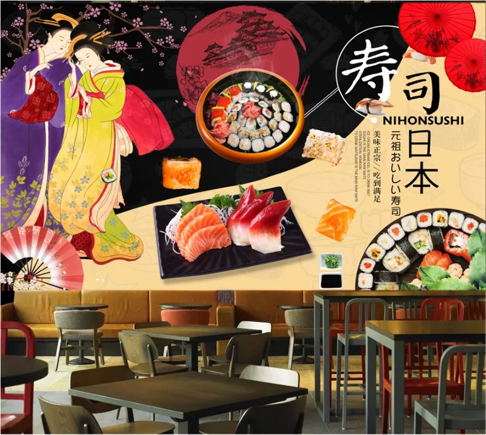 Пользовательская японская кухня суши настенная бумага 3D суши бар р...