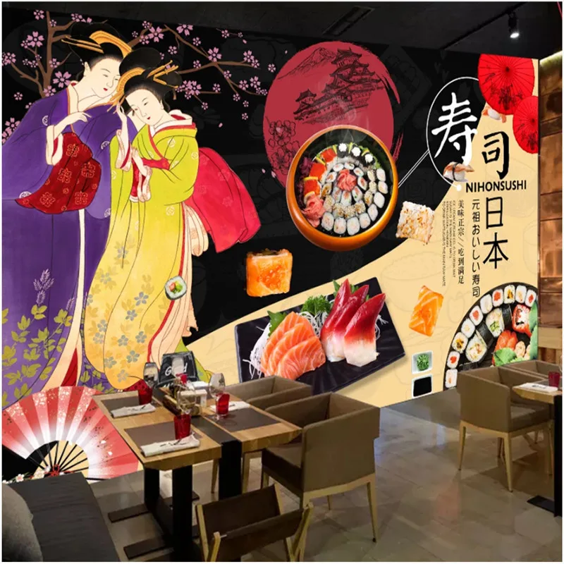Пользовательская японская настенная бумага гейши, 3D кухня, магазин...