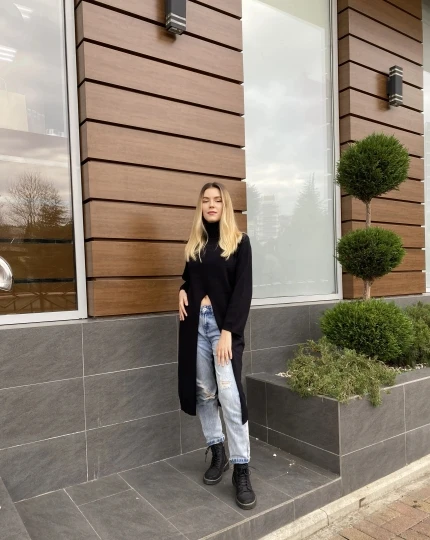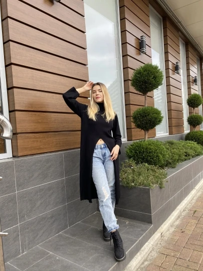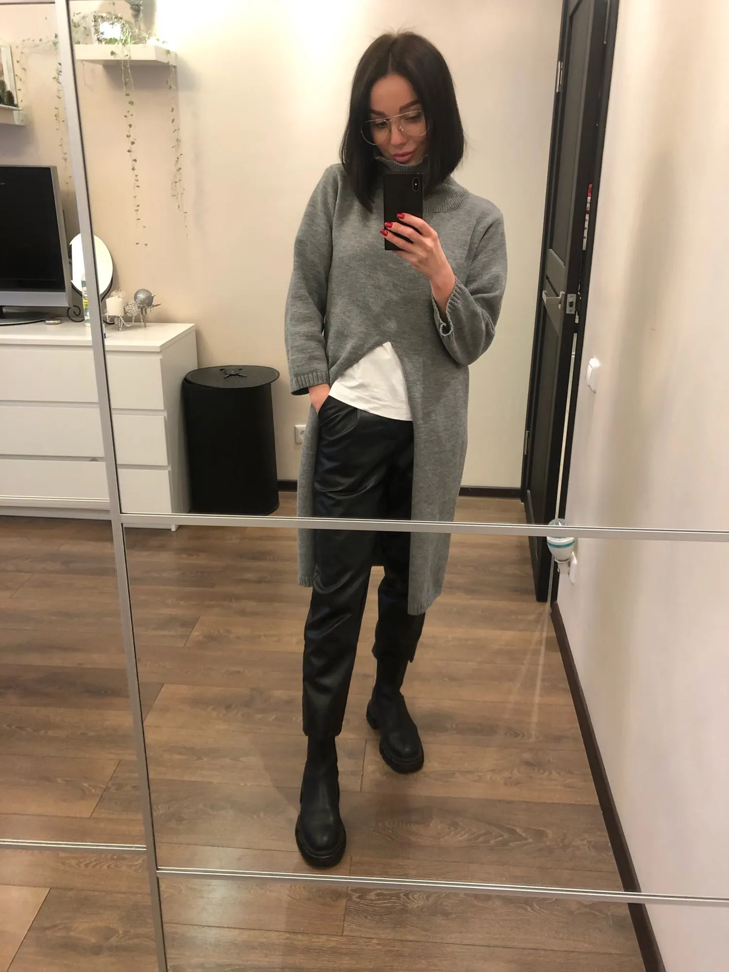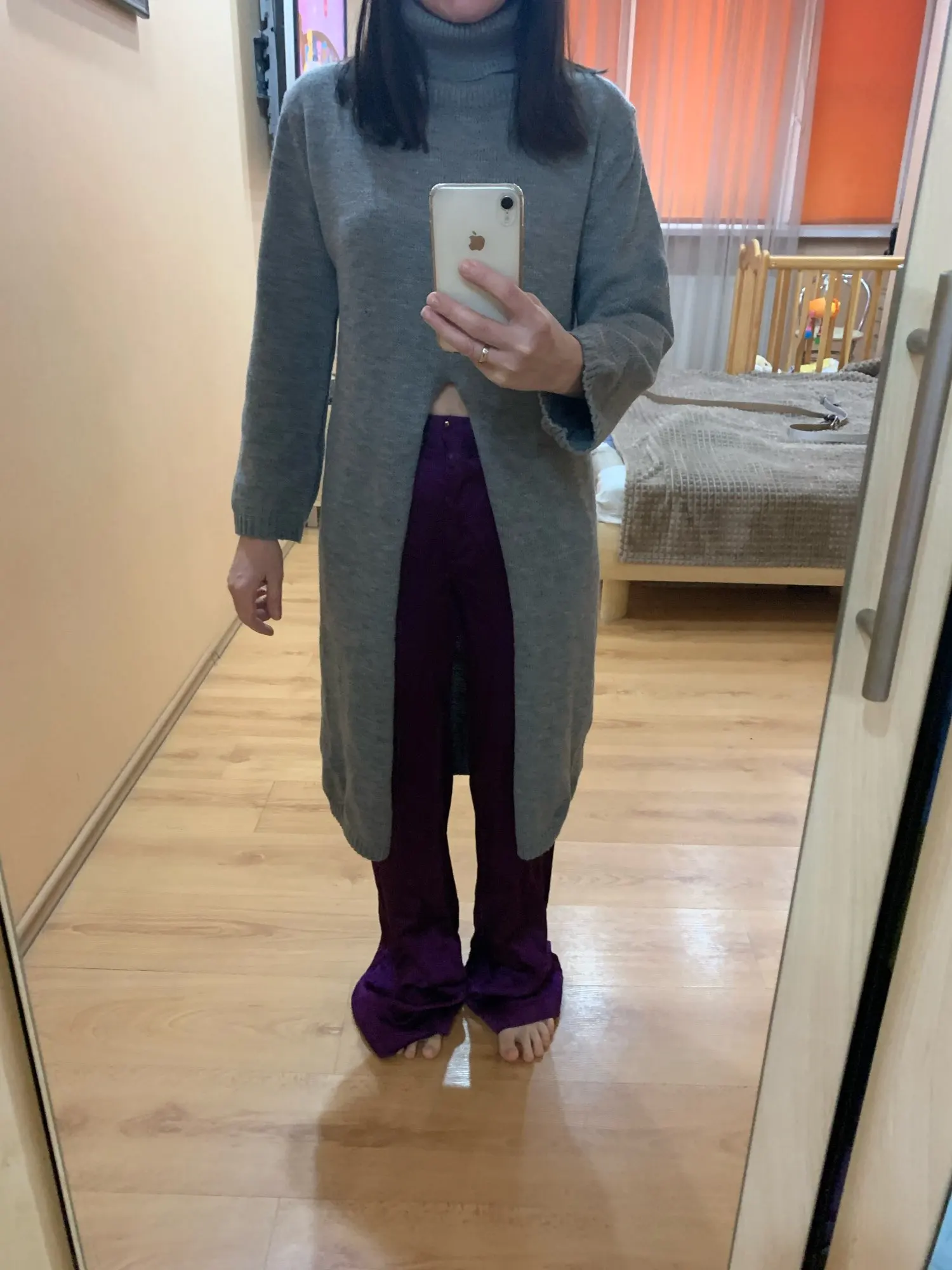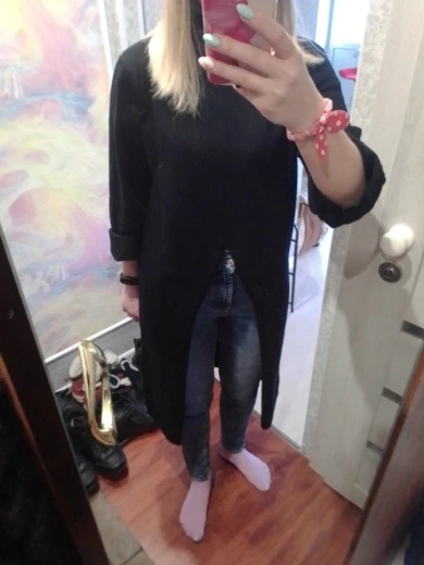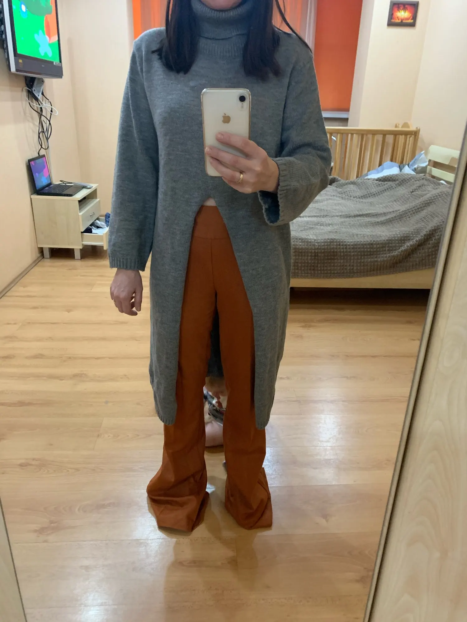 Свитер плотной вязки, тяжеленький. Немного не понравилось место «разреза» - выглядит так, как будто может разойтись. Рукава широкие, были немного коротковаты. Постирала и когда сушила, то немного потянула рукава, и они стали подлиннее, как мне и было надо, иначе выглядело куце. Пока ещё не носила. Разрез достаточно высокий, в районе пупка, даже слегка выше. Мой рост 165, параметры 86-73-96. Несмотря на эти мелочи, поставила 5 звёзд, т.к аналогичные модели стоят намного дороже (находила в Инстаграмм)