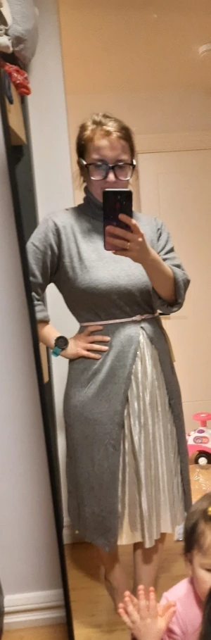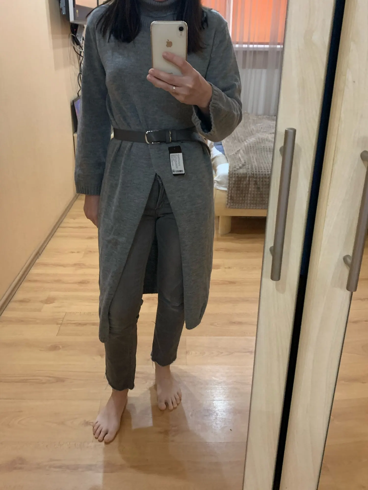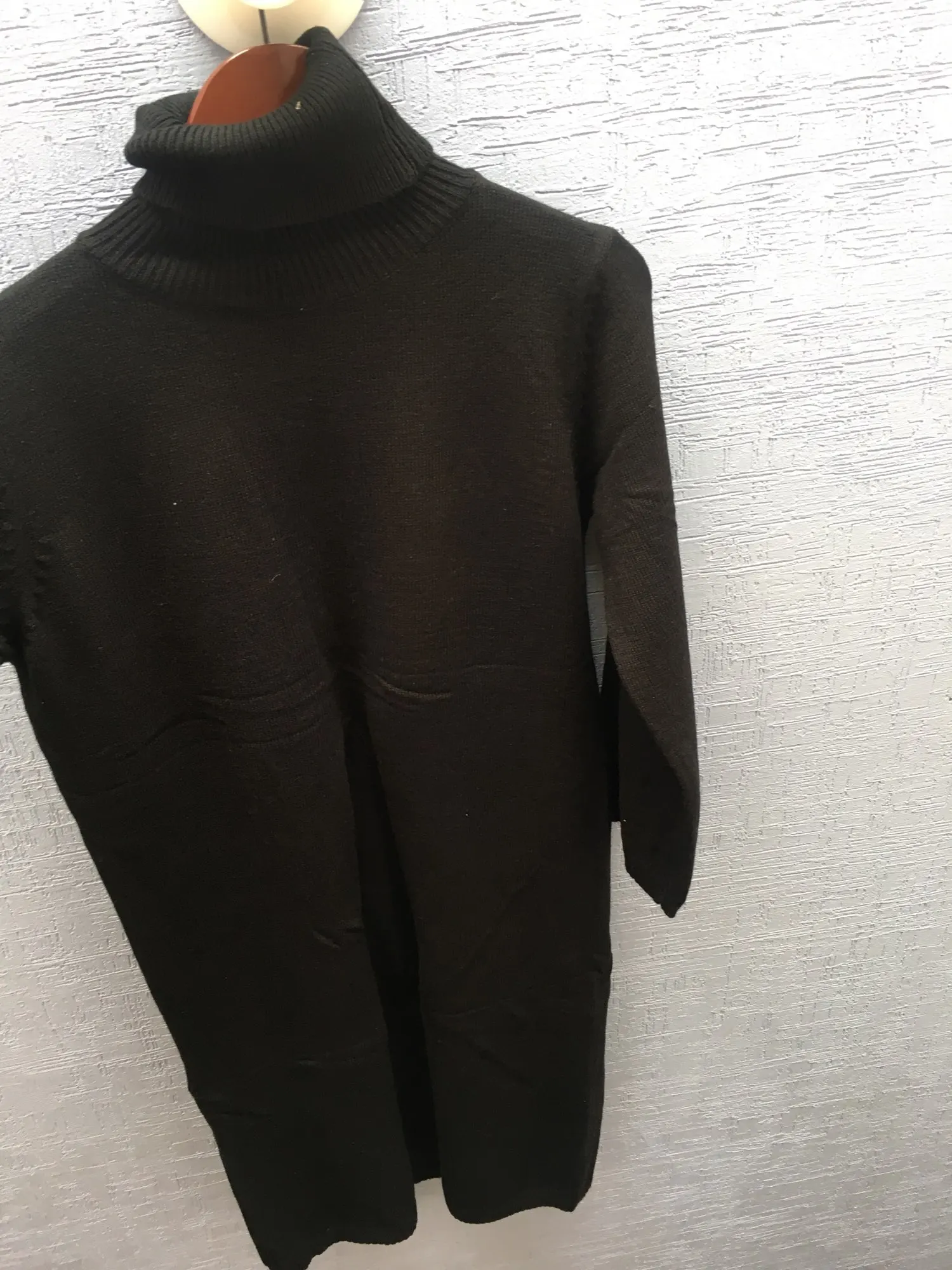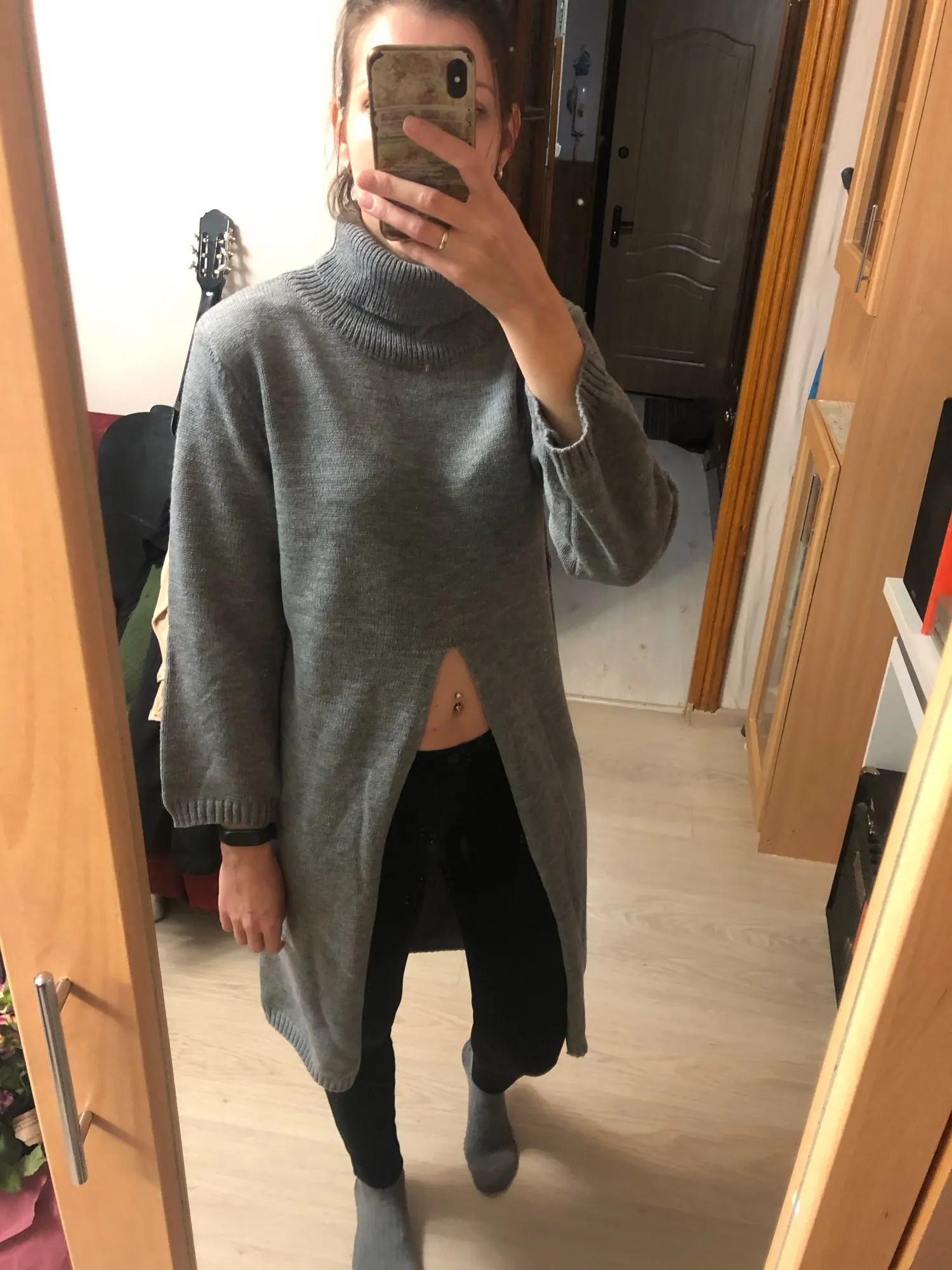 Платье - водолазка интересное. Довольно плотное, разрез мне до пупка при росте 1.64 м. Воротник на горло не давит, но и не свободный. Продавец положил купон на 3 доллара, но срок его истёк 31.01.21))) Товар ко мне пришёл 01.02.21. Мои параметры ОГ 92 ОТ 70 ОБ 92. Фотку как сидит прикрепляю.