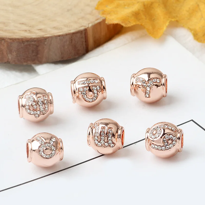 Новый оригинальный сплав бусина розовое золото Зодиак Шарм с днем рождения подходит для браслета Пандора браслет ожерелье DIY женские украшения Dropship