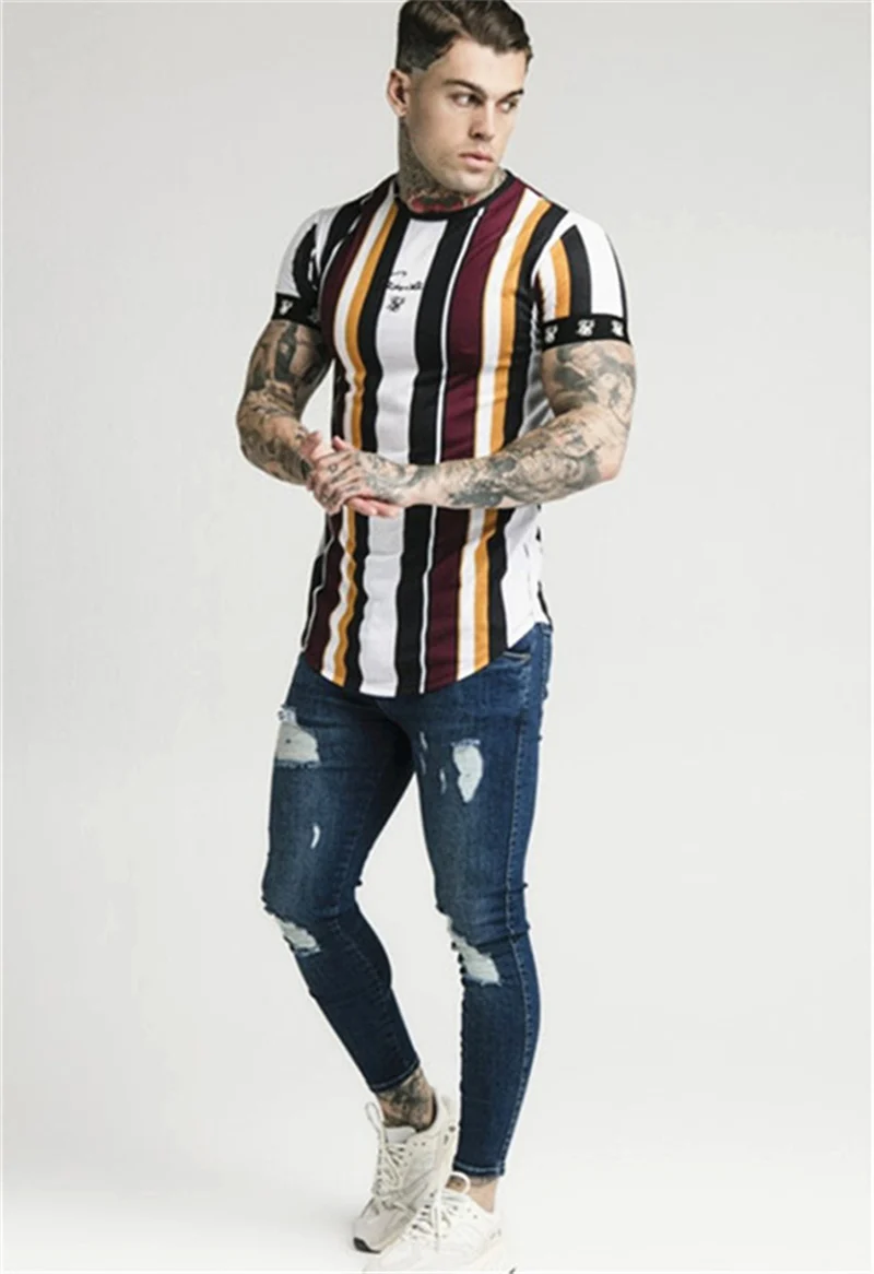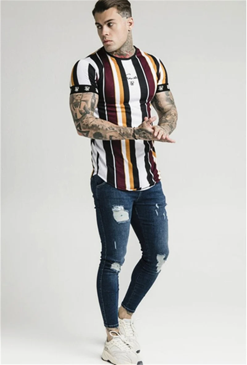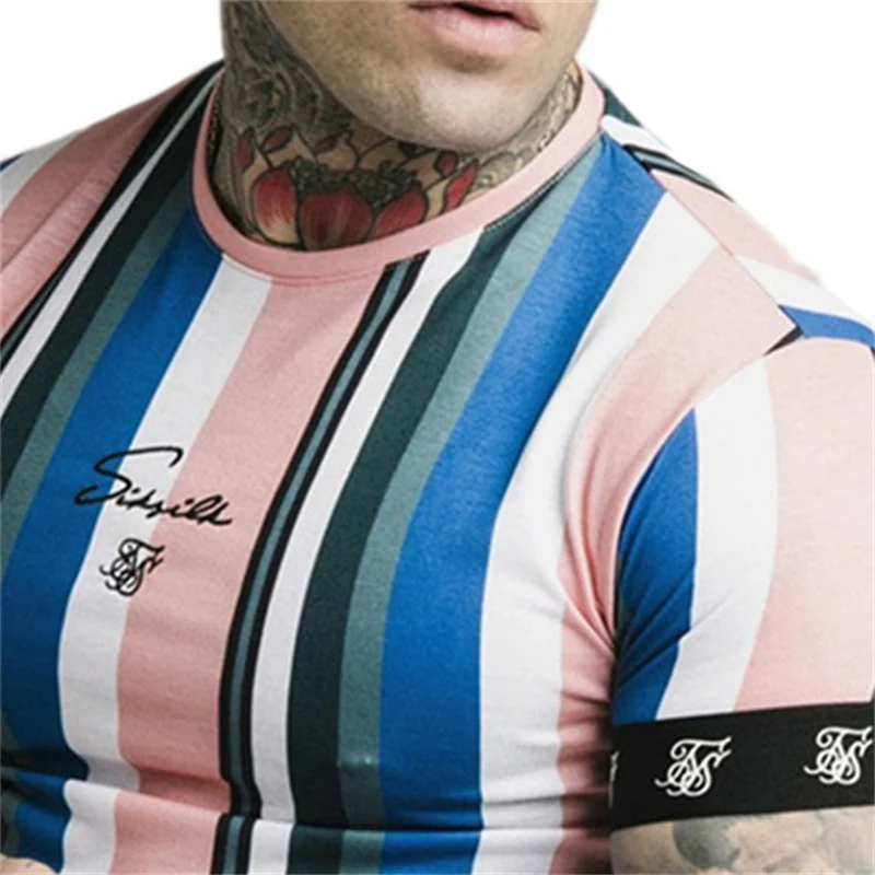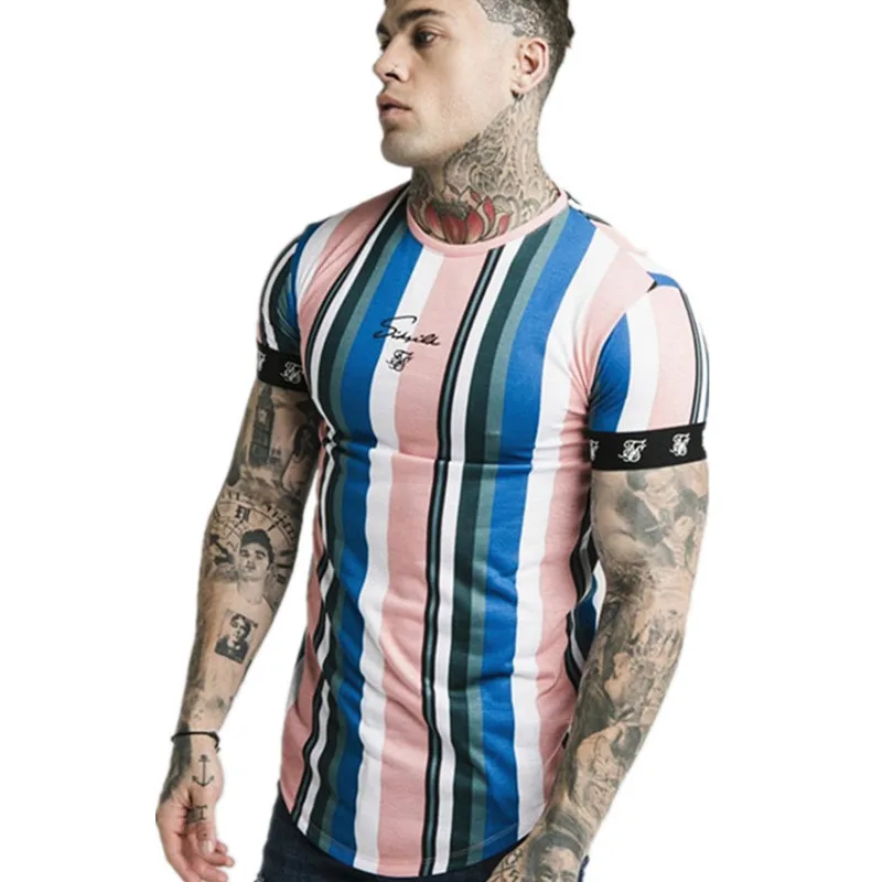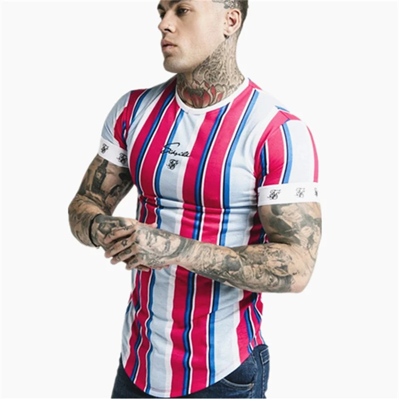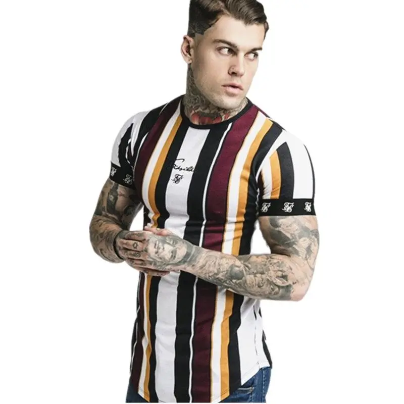 Мужская футболка с коротким рукавом, в стиле хип-хоп, обтягивающая, для бодибилдинга, для бега, фитнеса, полосатые топы, летний Повседневный Быстросохнущий костюм, 2019