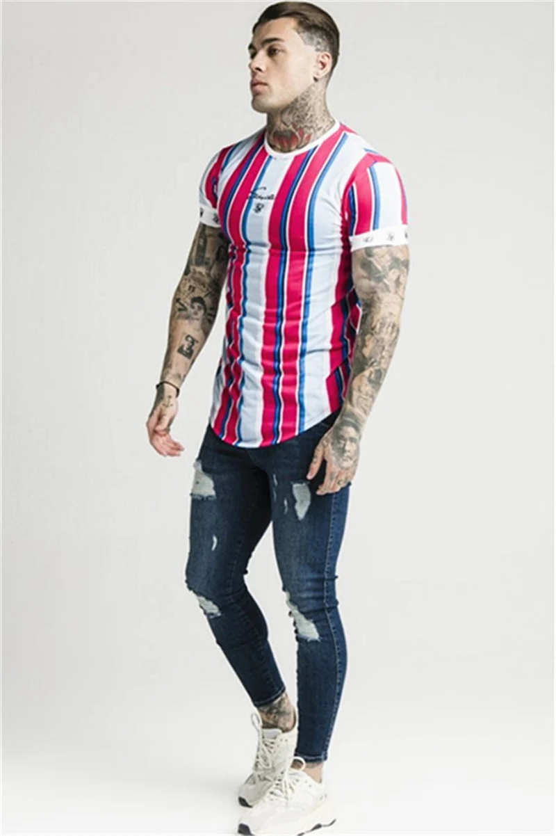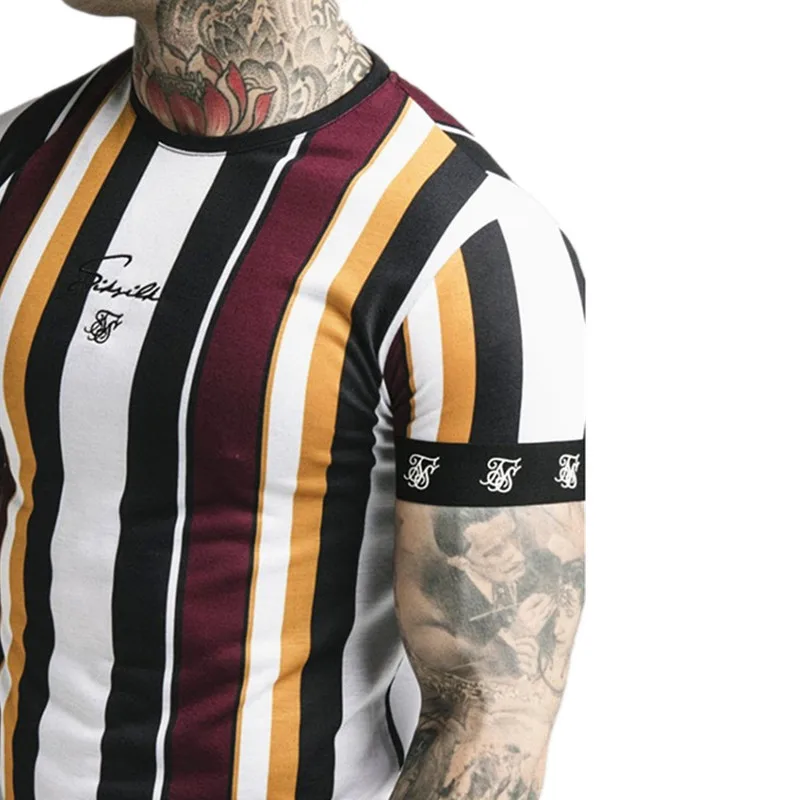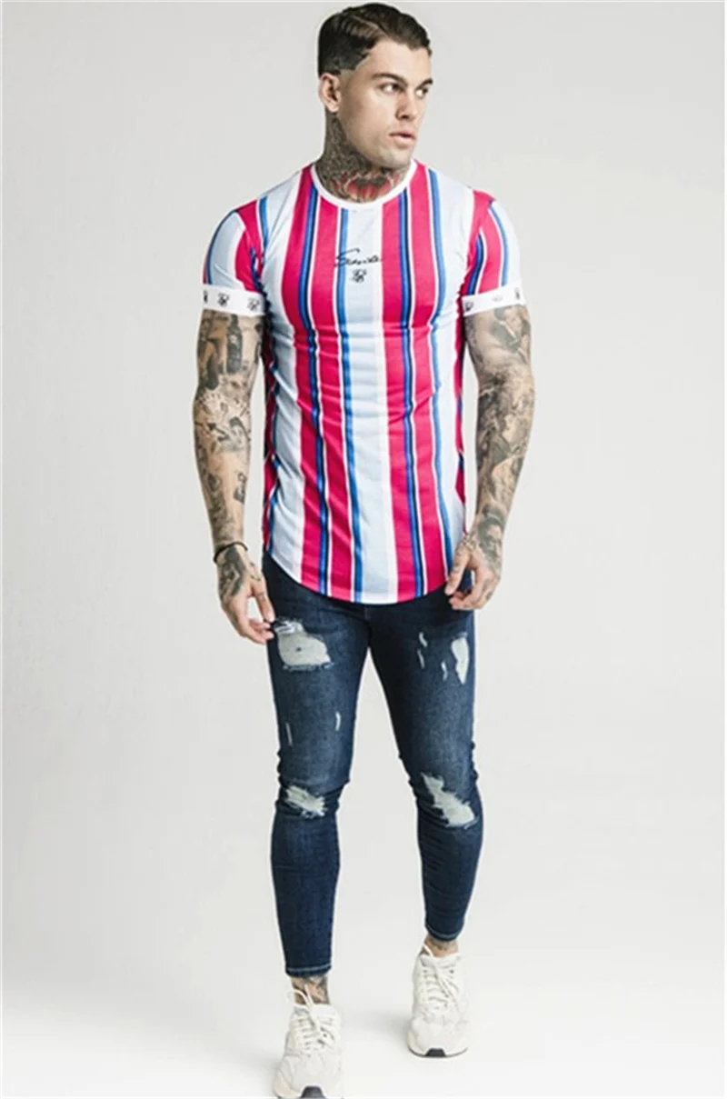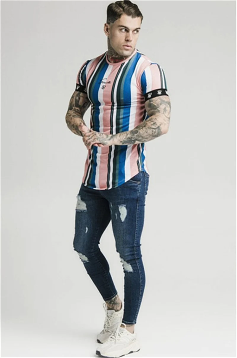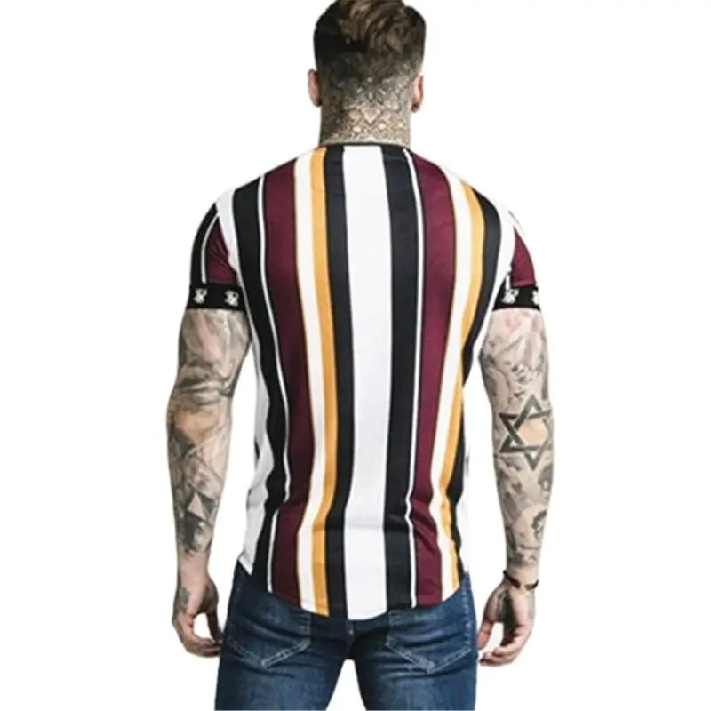 Мужская футболка с коротким рукавом, в стиле хип-хоп, обтягивающая, для бодибилдинга, для бега, фитнеса, полосатые топы, летний Повседневный Быстросохнущий костюм, 2019