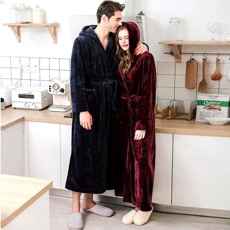 Мужской длинный теплый фланелевый Халат, зимний флисовый Халат с капюшоном, женская одежда для сна, сексуальная одежда
