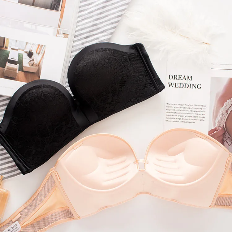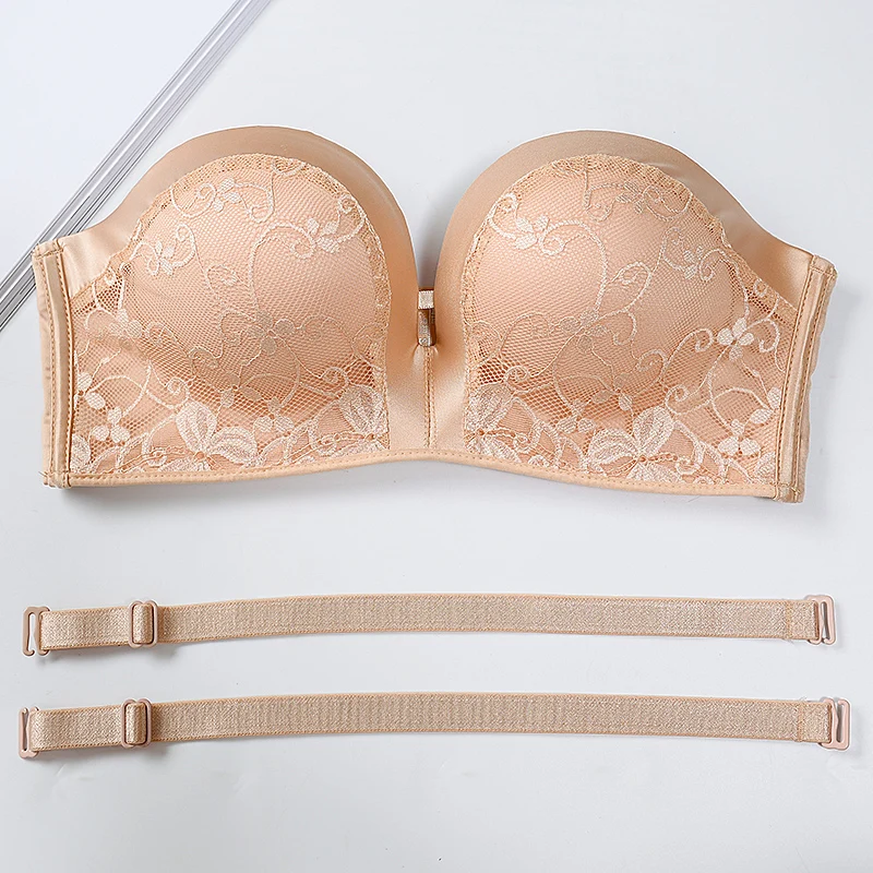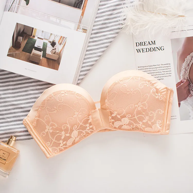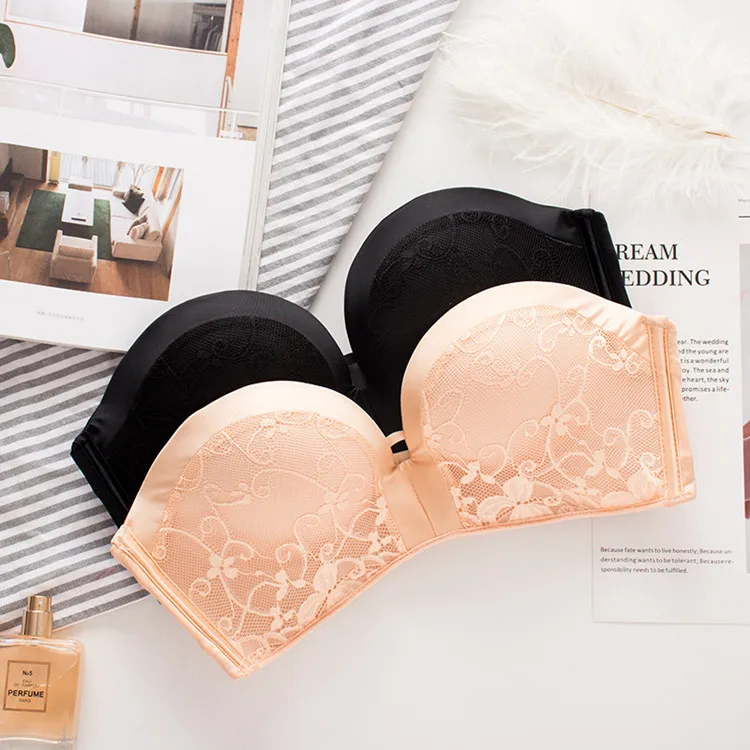Бюстгальтер женский кружевной, без бретелек, с эффектом пуш-ап, бесшовный, нижнее белье, топы