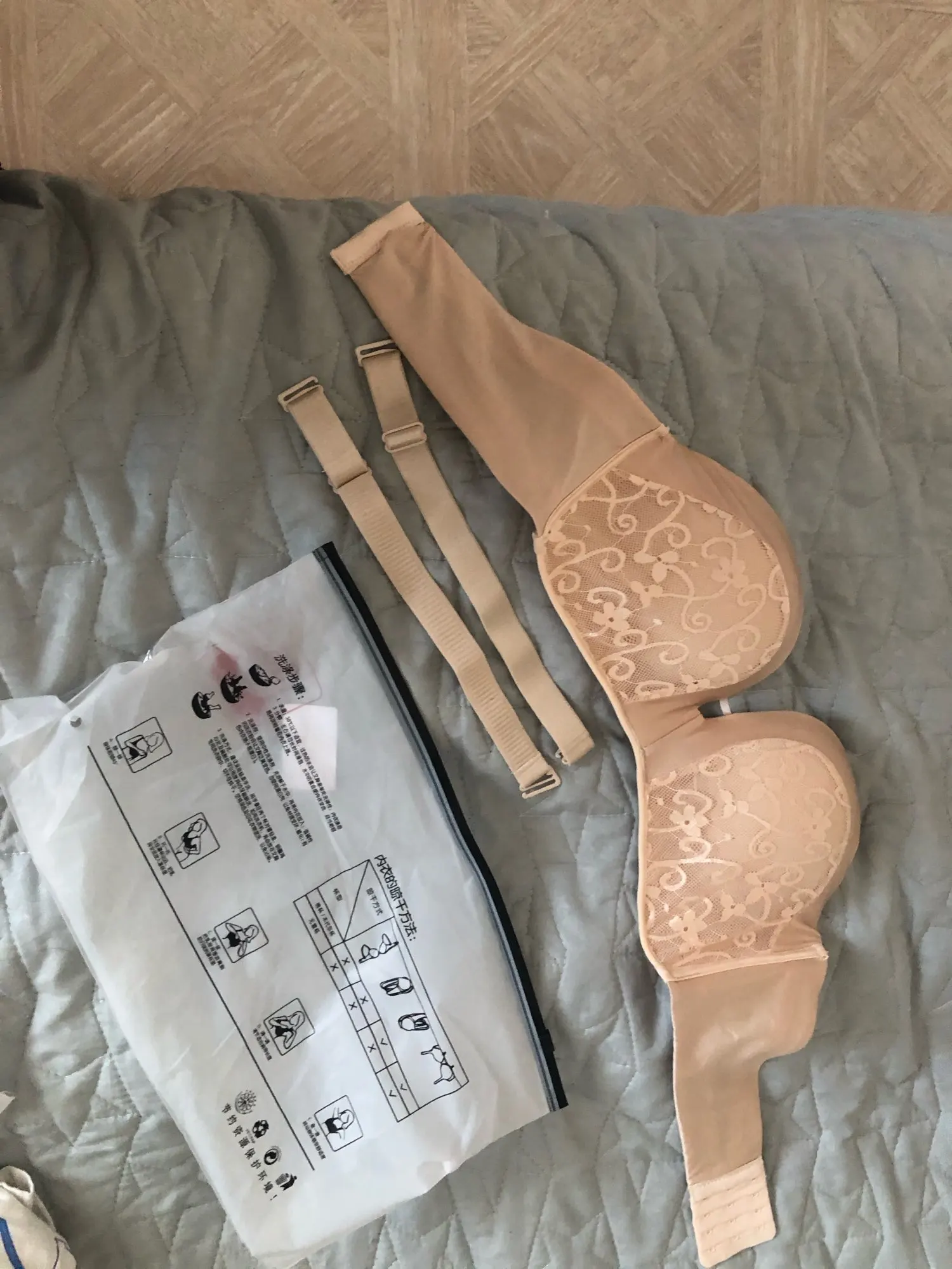 Очень не одназначная покупка. Отправили быстро. Но пришёл бракованный, и судя по отзывам так у многих. Одна чашечка мятая и вывернута наружу, из-за этого под любой одеждой одна грудь нормальная, а другая с дурацким швом получается.