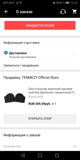 Страна: RU Color: Black Cup Size: 80B Доставка: Standard Shipping 24.02.2021