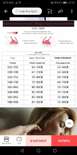 Пришло быстро . Качество хорошее . Под грудью у меня 67 см . Бюст подошёл ,но без лямок все равно съезжает со временем . Хотя,есть Силиконовая проклейка. Другой аналогичный бюст стоил дешевле у другого продавца ,но держится намертво. Это тоже понравился . На объём груди 77 подошёл. Пуш ап достаточно объемный .