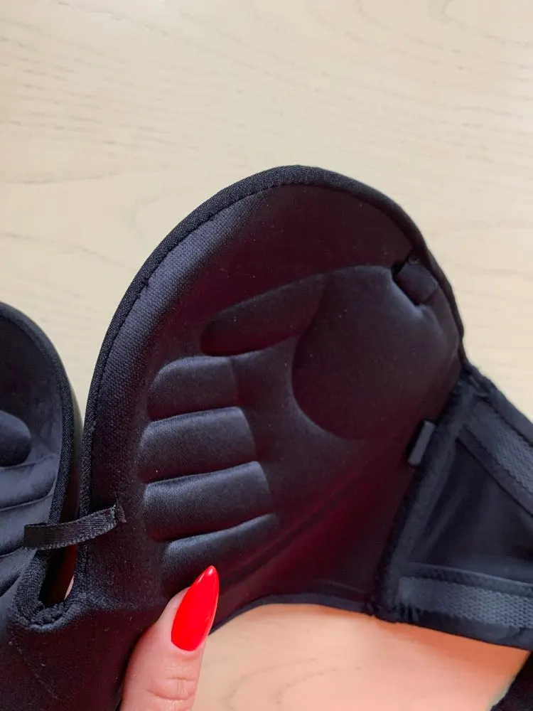 Заказывала бежевый бюст летом, решила заказать ещё чёрный бюст, он обошёлся мне в 555р. Чёрный оказался сшит не так хорошо как бежевый, немного кривой. Есть две бретели широкие, можно их снять и одну из них надеть на спину, чтобы было туже и лиф не сползал и не топорщился сверху. На небольшой груди сидит хорошо, не сползает. На ОГ 86см, под грудью 73 см взяла 80В, сидит хорошо, также как и бежевый. До Самары доставка 3 недели.