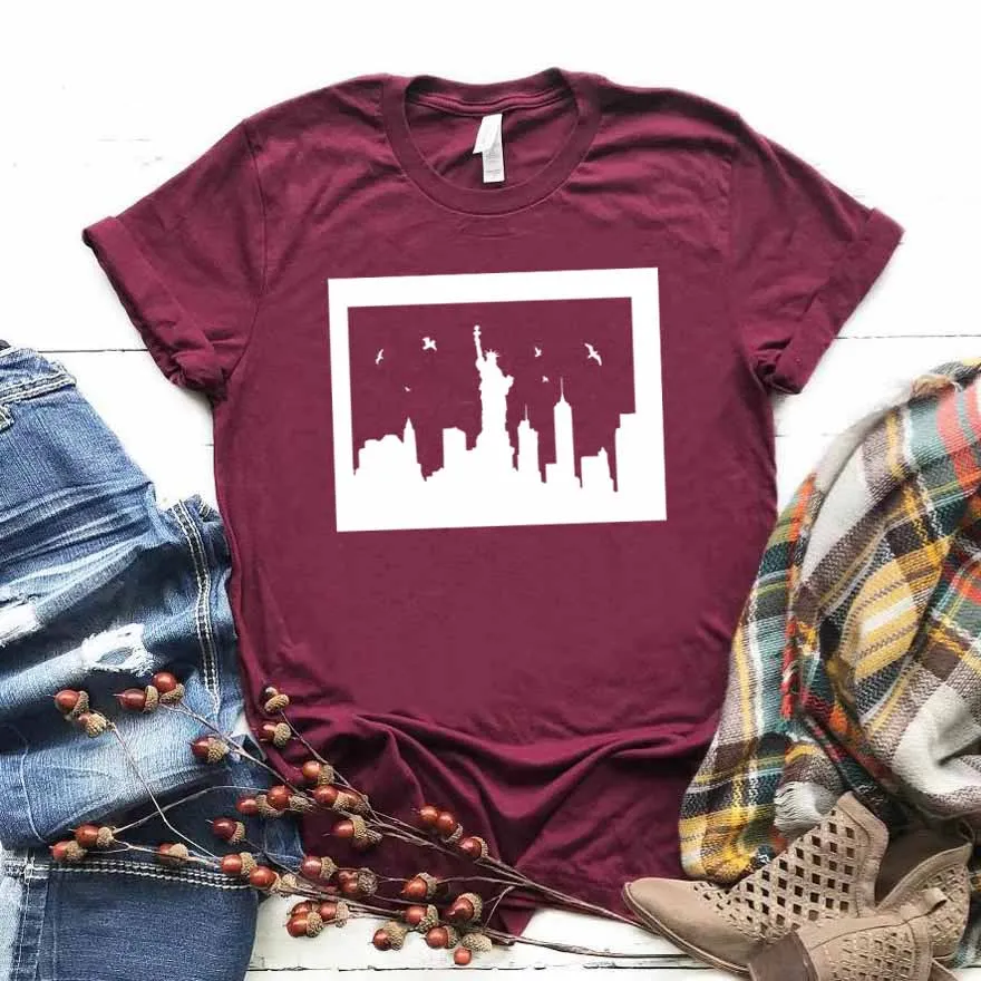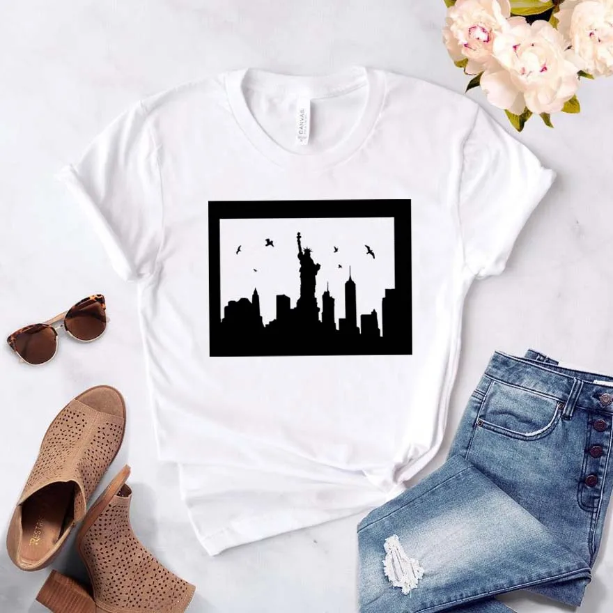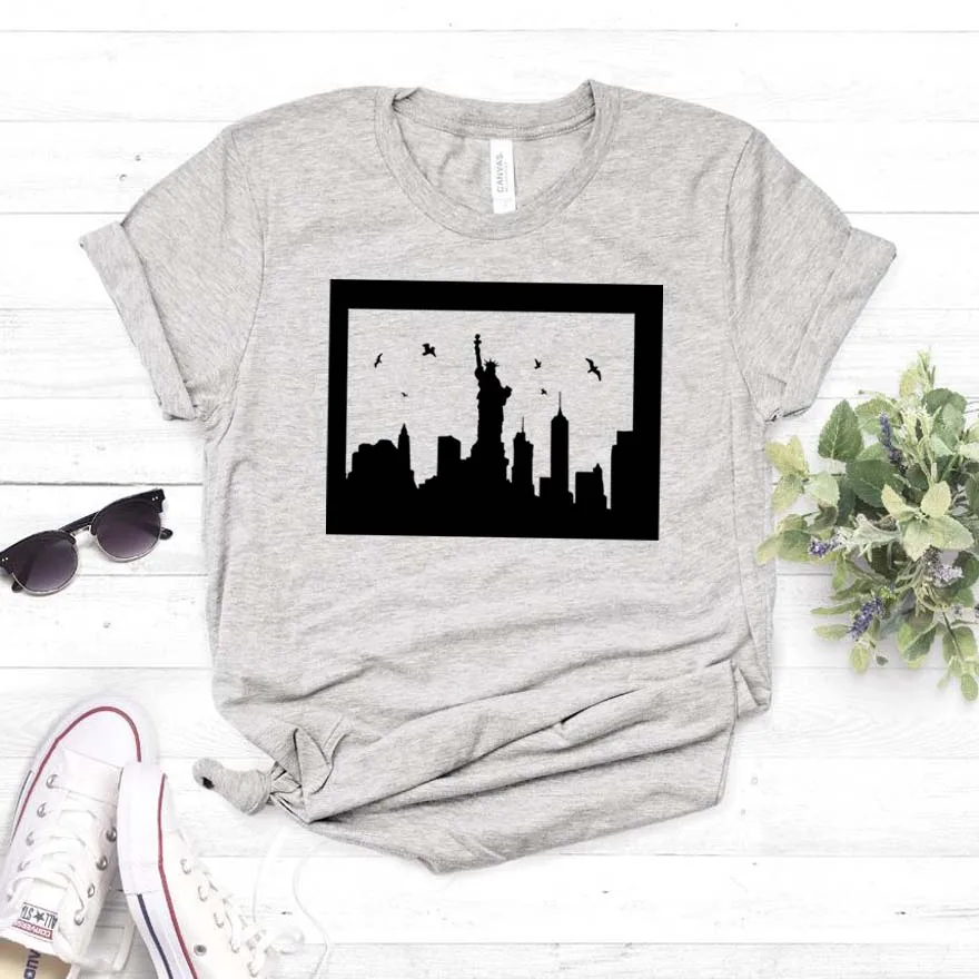 Женская футболка с принтом Нью-Йорка, хлопковая хипстерская футболка с забавным принтом, Женский Топ для молодых девушек, футболка, Прямая поставка