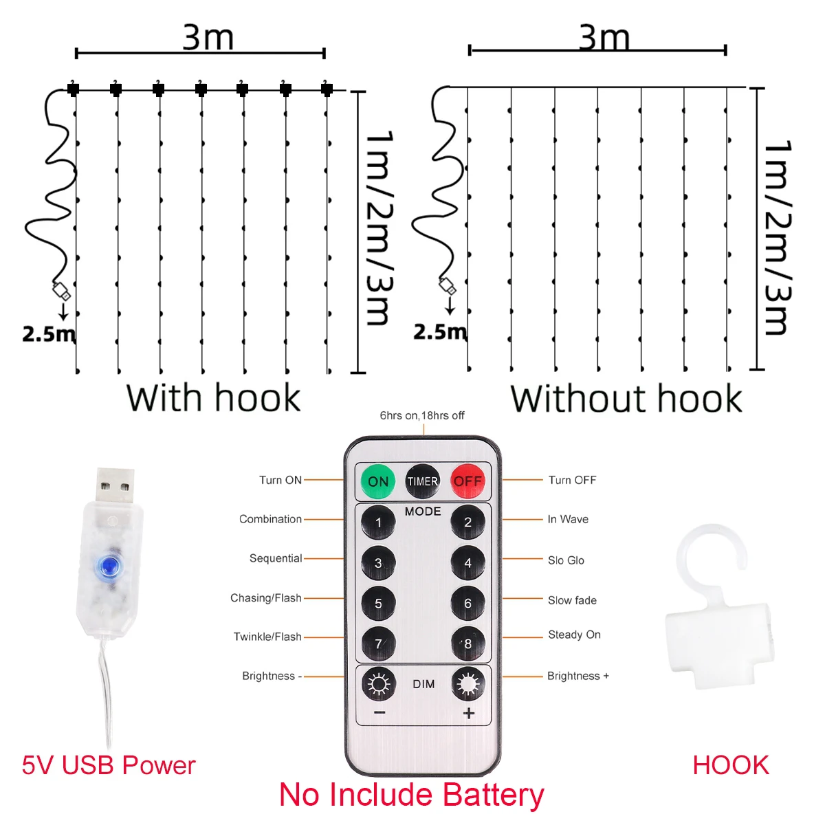СВЕТОДИОДНАЯ Гирлянда-занавеска с дистанционным управлением, 3 м