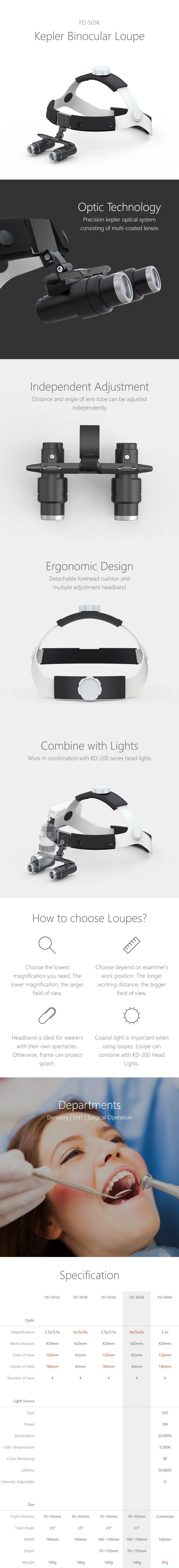 FD-503K 4X 5X 6X стоматологическая ЛОР хирургия медицинская повязка Kepler бинокулярная Лупа