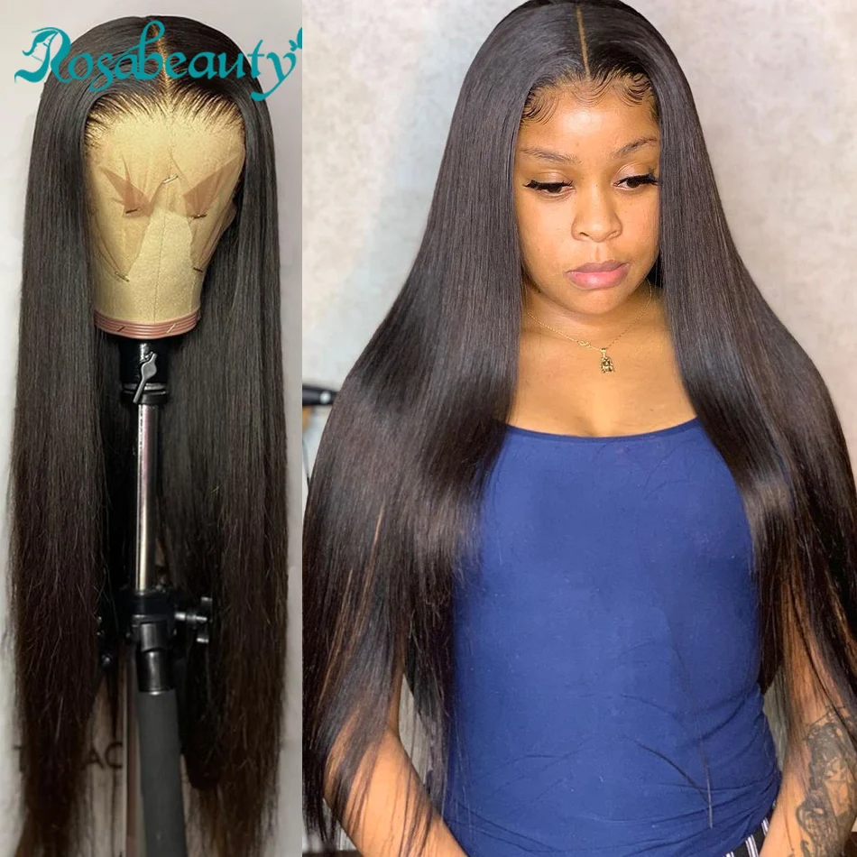 Rosabeauty 250 плотность 30 40 дюймов 13X6 прозрачные кружевные передние человеческие волосы парики предварительно выщипанные бразильские Прямые фронтальные парики
