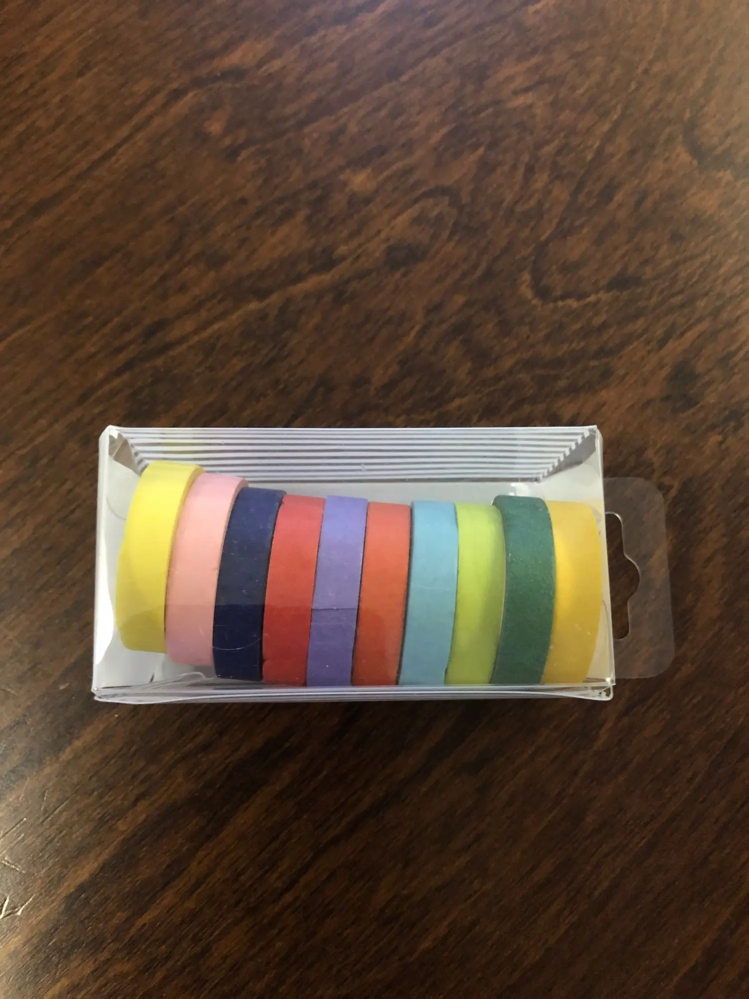 Он прибыл в расчетное время. Тем не менее, он не прибыл в хорошем состоянии, коробка была открыта и сломана. Один из washi tapes прибыл открытым и оторванным.