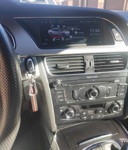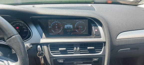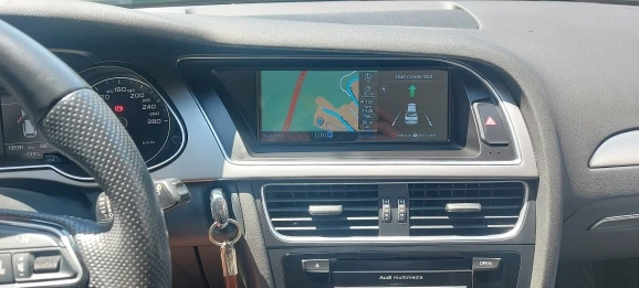 Дисплей заменяет оригинальный дисплей и может отображать предыдущее содержимое MMI как простой дисплей в любое время. В этом режиме может работать старая навигационная система, радио, диск и т. Д. Затем дисплей можно переключать, нажав на левую область, чтобы Интегрированная Система Android теперь заняла управление дисплеем. Звук переходит в исходную систему через интерфейс AUX. Поэтому вам нужно переключиться на AUX для мультимедиа в MMI. Логически, громкость может быть изменена как обычно на рулевое колесо и поворотное управление, так как интерфейс AUX в основном используется. В основном меню можно использовать колесо MMI для включения меню. В противном случае все работает через сенсорный экран. Слишком плохо. Адаптированная клавиатура, которая может управляться с колесом, была бы хорошей.