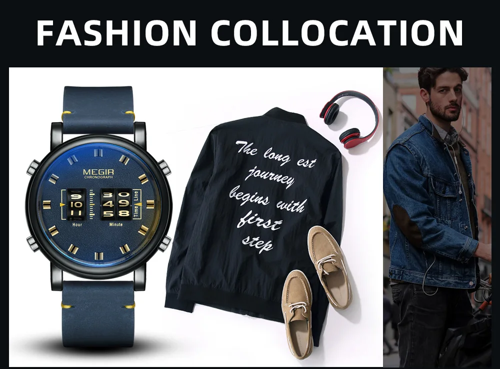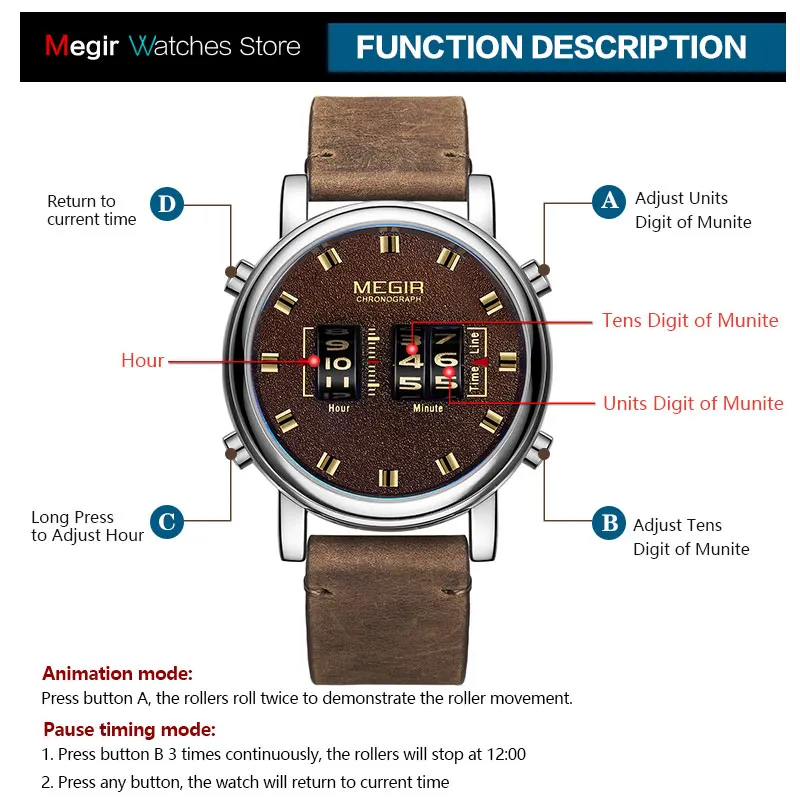 MEGIR 2019 новые часы с верхним ремешком Мужские Военные Спортивные коричневые кожаные кварцевые наручные часы Роскошный барабан ролик relogio masculino 2137