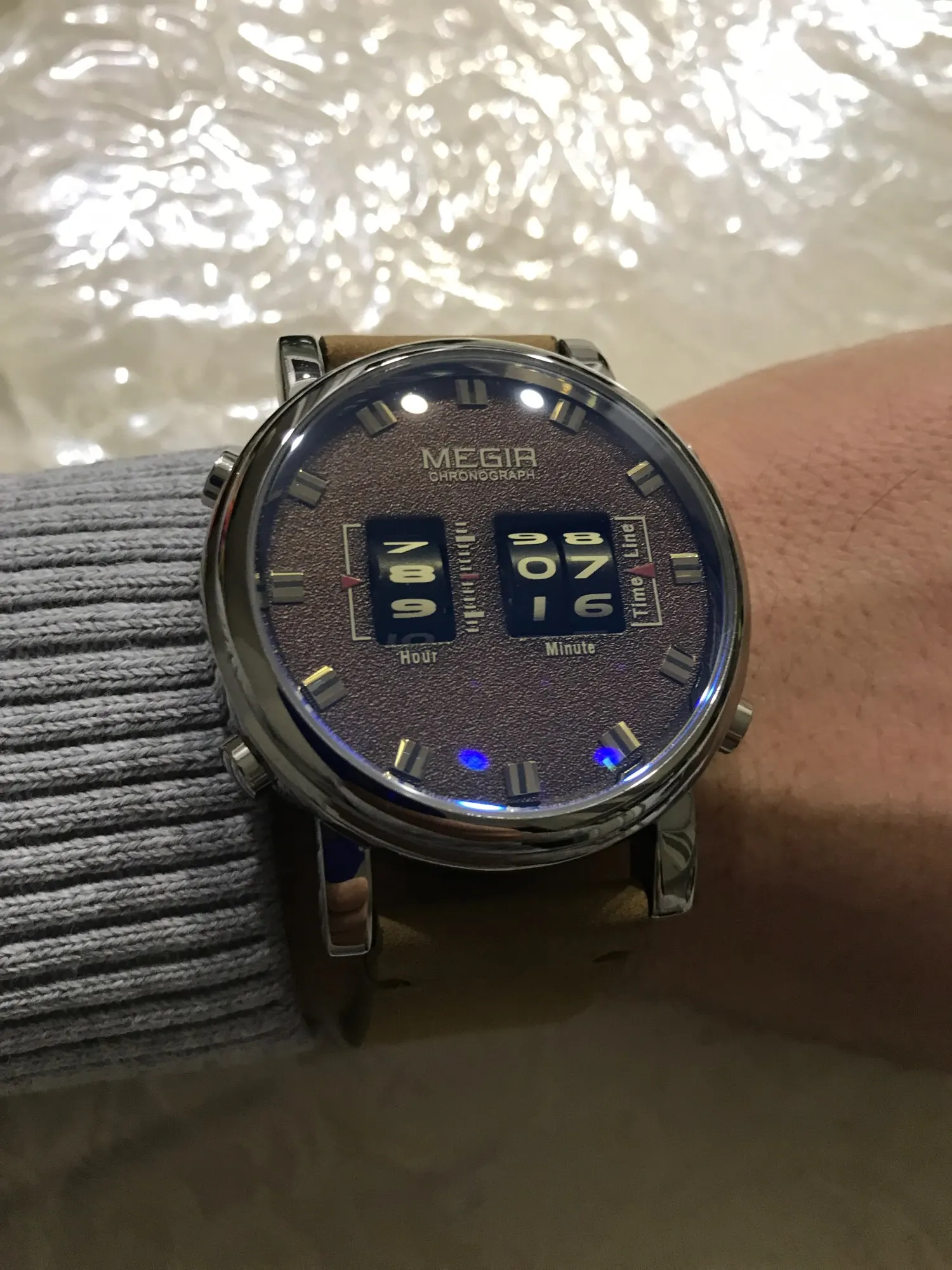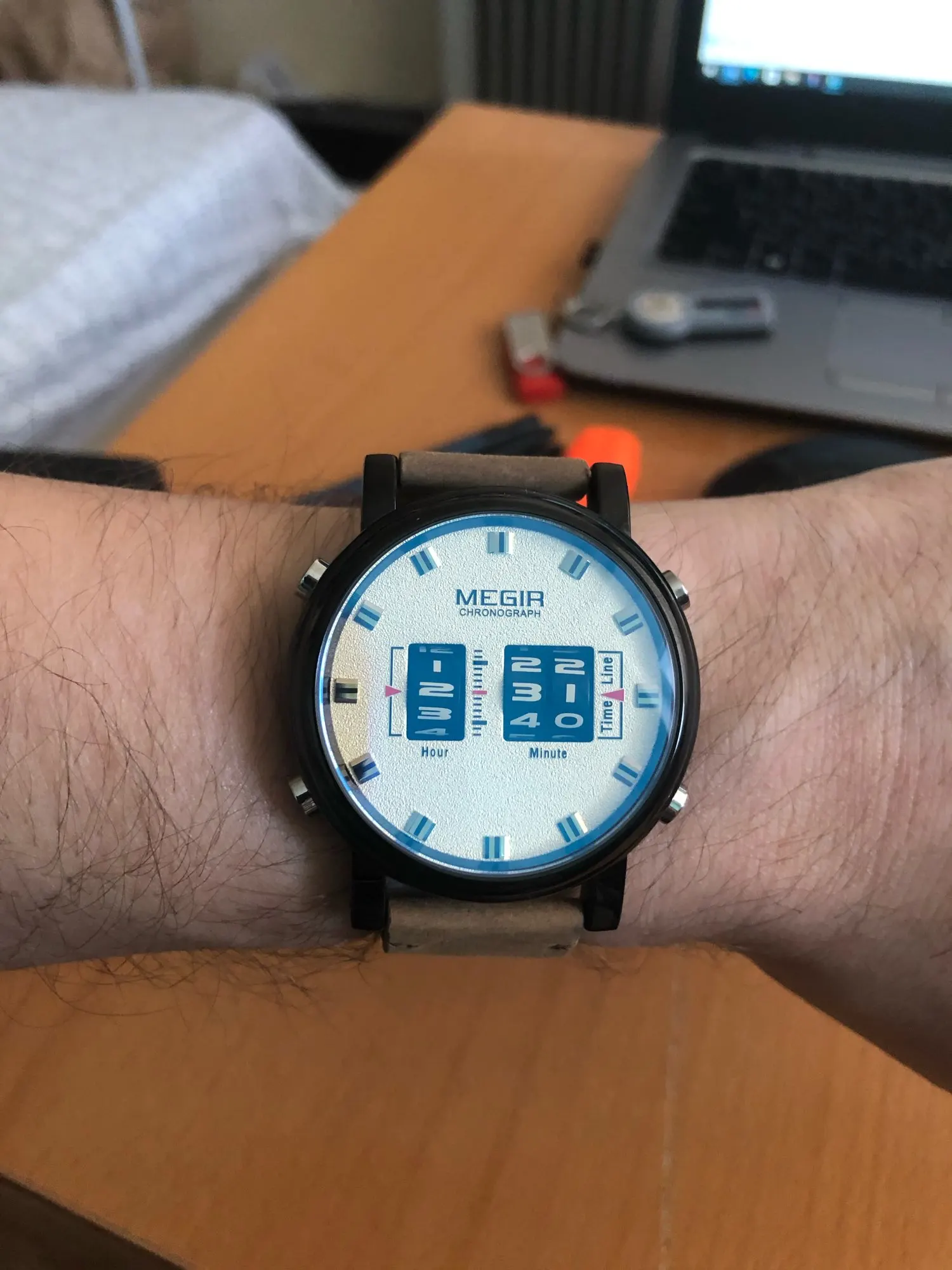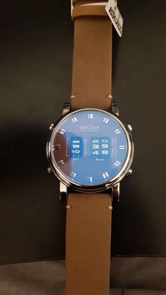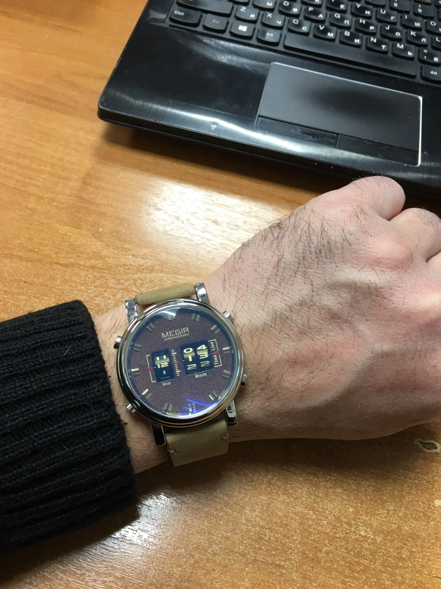 Часы потрясающие, простые и современные, это как наручные часы со спидометром, часы с тяжелым браслетом из натуральной кожи, все красиво отделано, очень стоит... Это вторая покупка в том же магазине, первая не работает минут, когда была 12:29, вместо того, чтобы менять 12:30 на 12:21, попросили вернуть деньги, используя видео в качестве доказательства и принять Быстрый спор, поэтому вернули стоимость купил другой и заказали сообщения, чтобы быть протестированы перед отправкой, Теперь все сложилось.☕