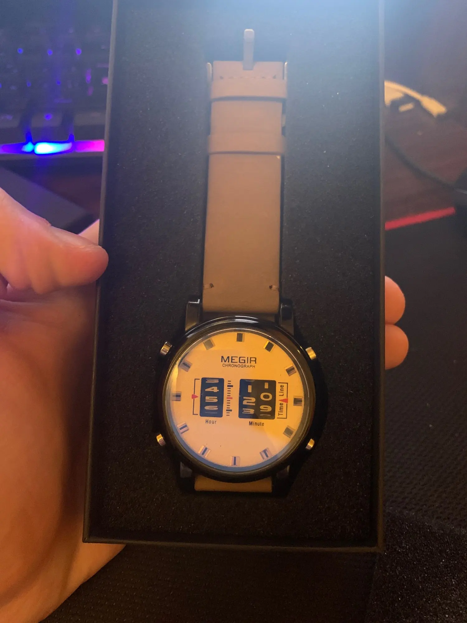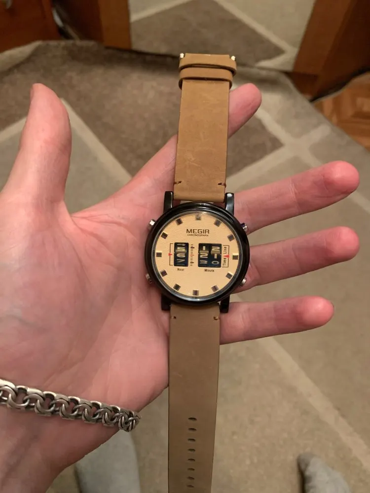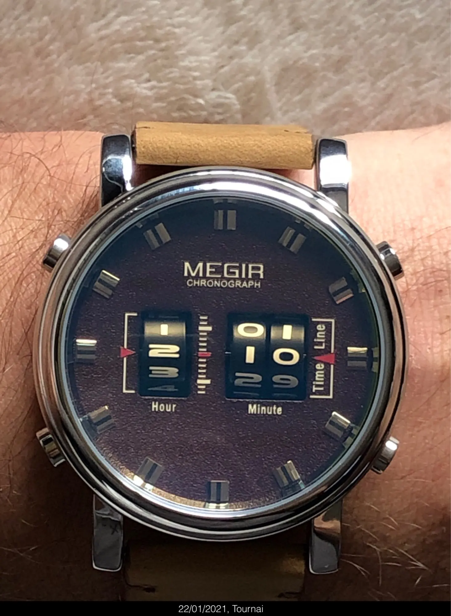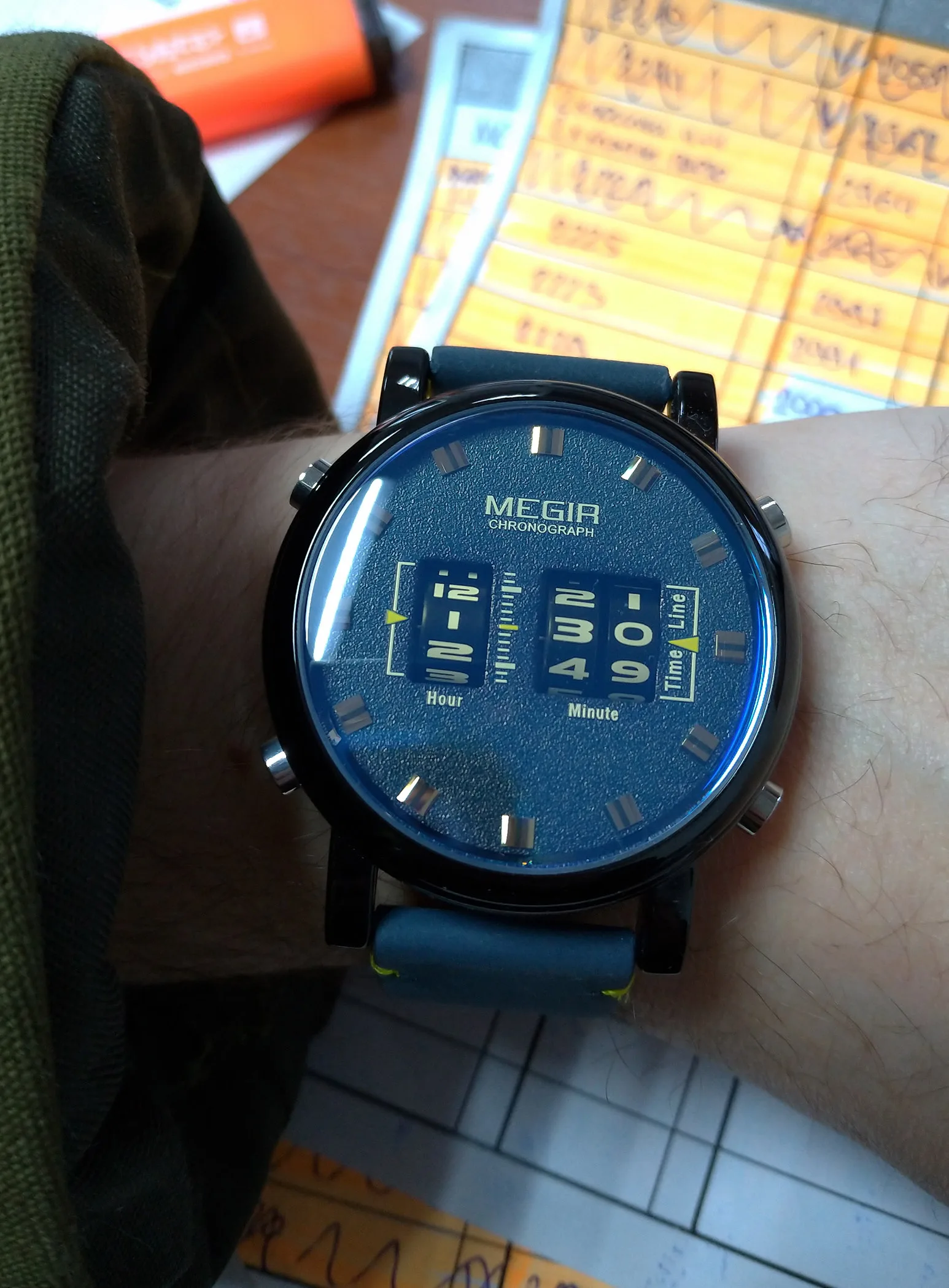 Часы потрясающие, простые и современные, это как наручные часы со спидометром, часы с тяжелым браслетом из натуральной кожи, все красиво отделано, очень стоит... Это вторая покупка в том же магазине, первая не работает минут, когда была 12:29, вместо того, чтобы менять 12:30 на 12:21, попросили вернуть деньги, используя видео в качестве доказательства и принять Быстрый спор, поэтому вернули стоимость купил другой и заказали сообщения, чтобы быть протестированы перед отправкой, Теперь все сложилось.☕