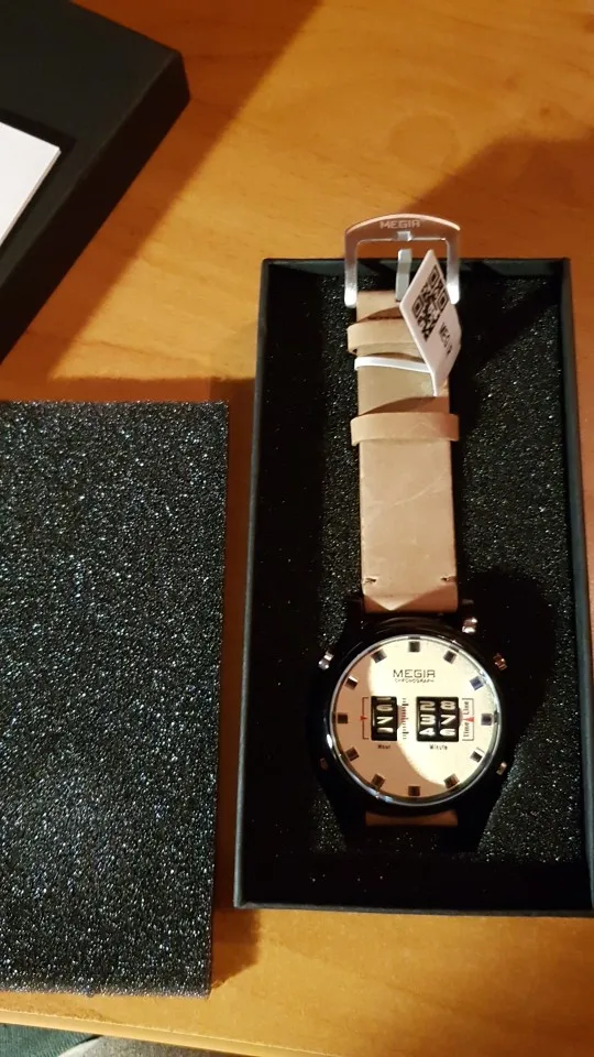 Какие красивые часы!! У меня есть десятки и десятки, и я могу сказать вам, что качество действительно там! Название очень красивое, браслет очень толстый и прочный! Честно говоря по цене я действительно не разочарован этими превосходными часами, И я даже куплю второй и поставил его на место позже, если я сломаю этот :) большое спасибо MEGIR !! 5 звезд без проблем;)