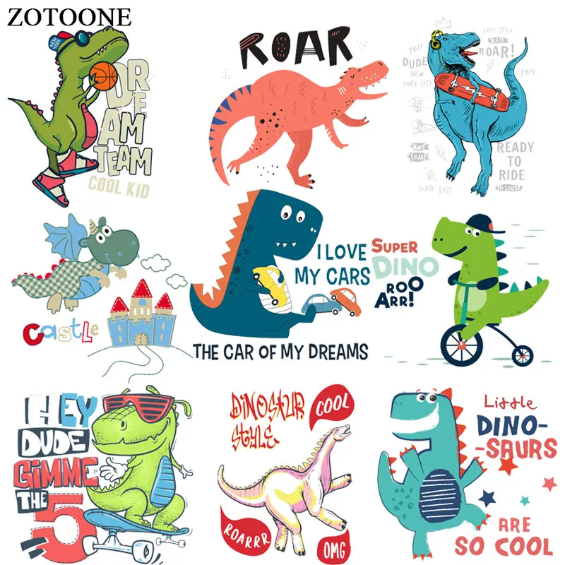 Термонаклейки ZOTOONE с мультяшным динозавром, термоклейкие аппликации для одежды сделай сам