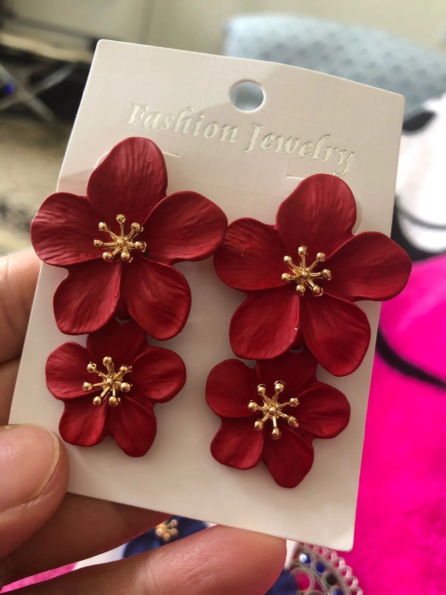 Двухслойные цветочные серьги для женщин, Свадебная вечеринка, бохо, ювелирные изделия, Висячие большие серьги, женские 2021