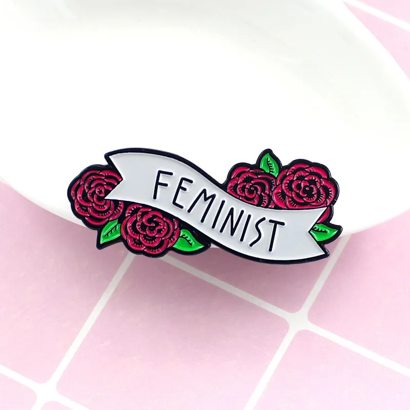 Феминизм, либерлизм, ура, женщины, феминистская Мотивационная женщина, красная роза, девушка, сила матки, я делаю то, что хочу, эмалированная брошь