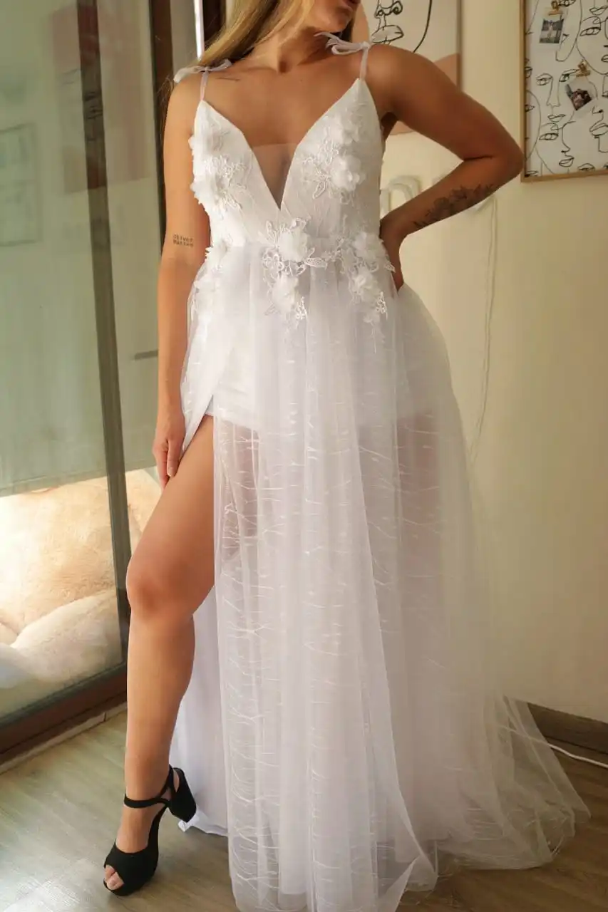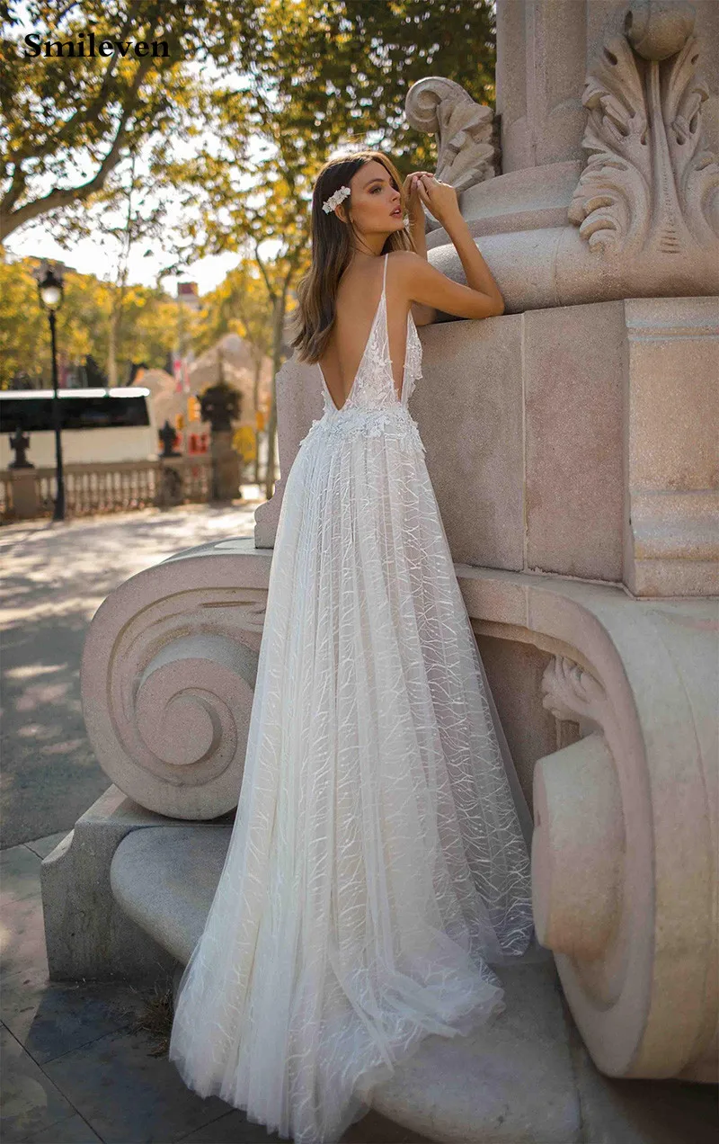 Свадебные платья Smileven, трапециевидные, со сверкающими кружевами, на тонких бретелях, с Боковым Разрезом, пляжные платья невесты, 2020