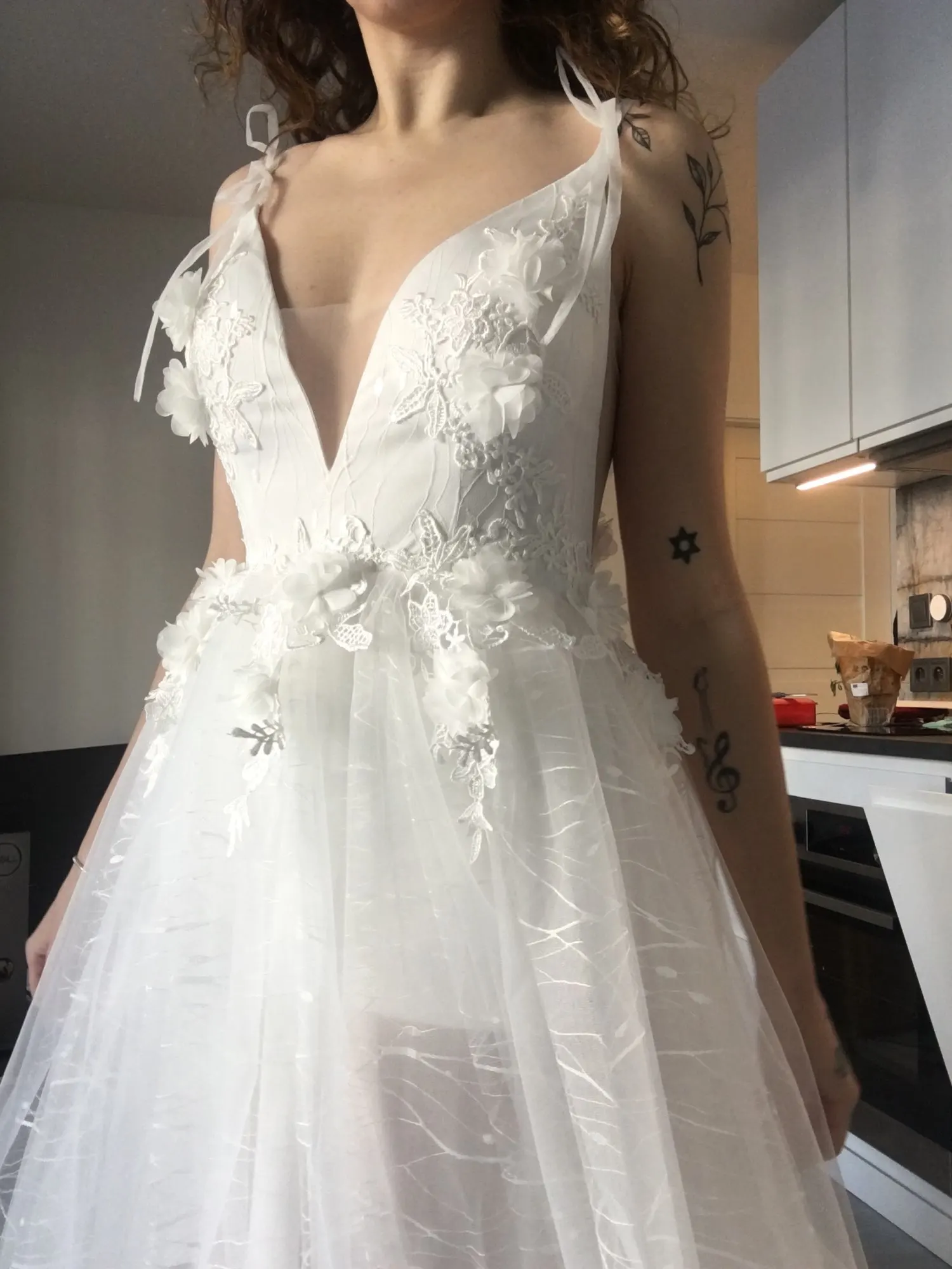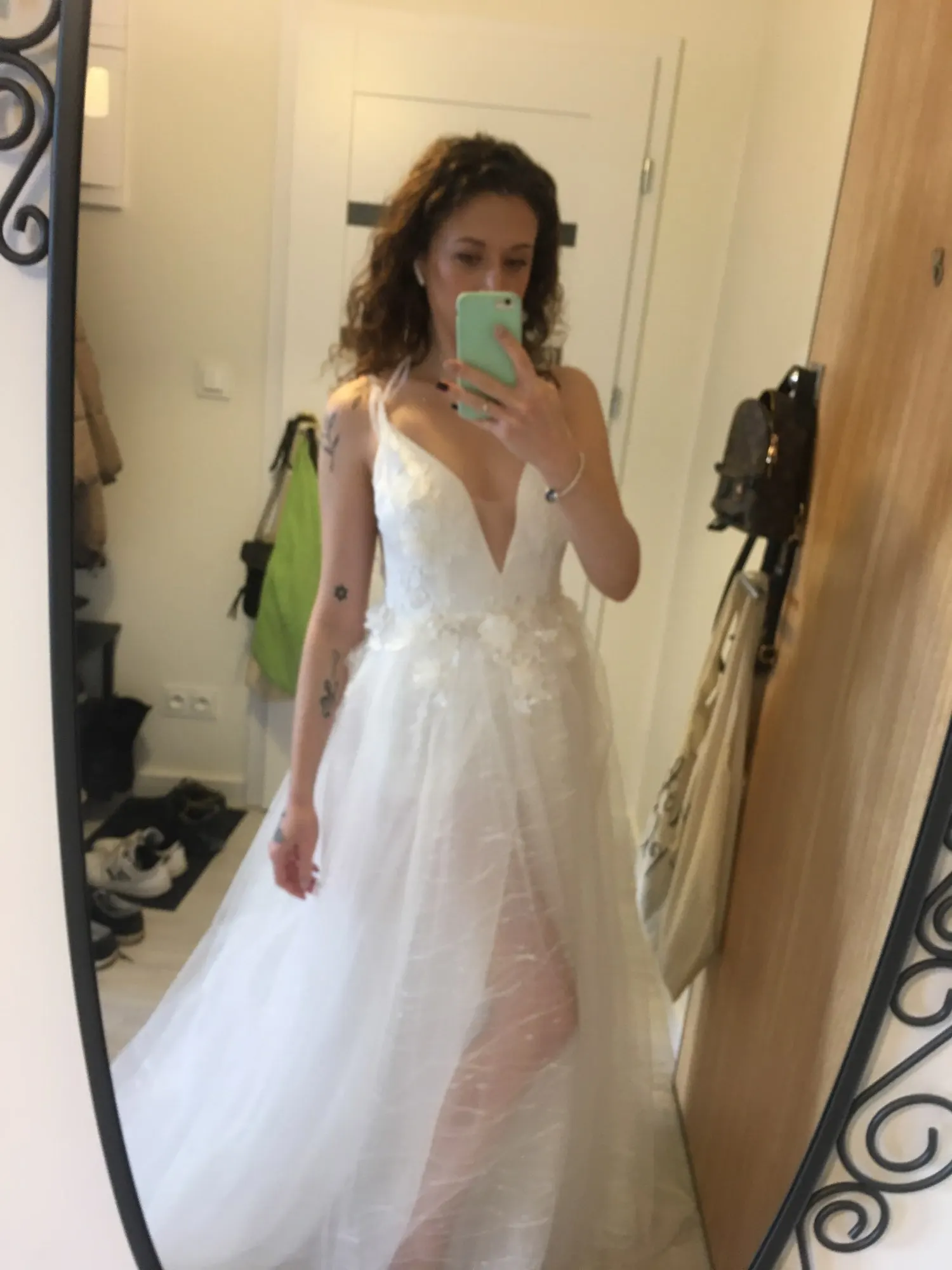 Платье не совсем такое, как на картинке, но я определенно рекомендую покупку, потому что оно красивое и качество хорошее. Единственная плохая вещь в том, что они должны отправить в специальной сумке платья, потому что я не прибыл в плохом состоянии, но вы должны ждать в моем шкафу до свадьбы без защиты, но все же очень доволен моим платьем.