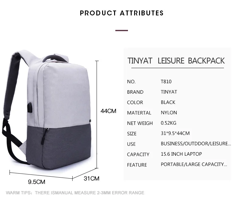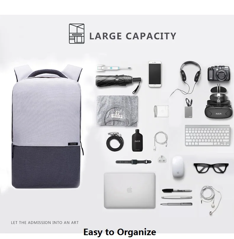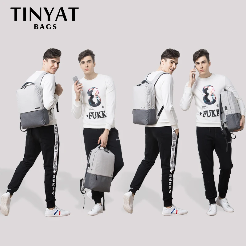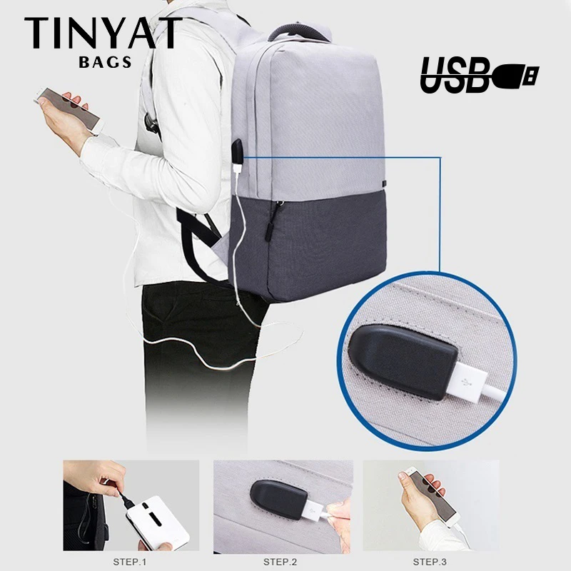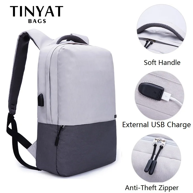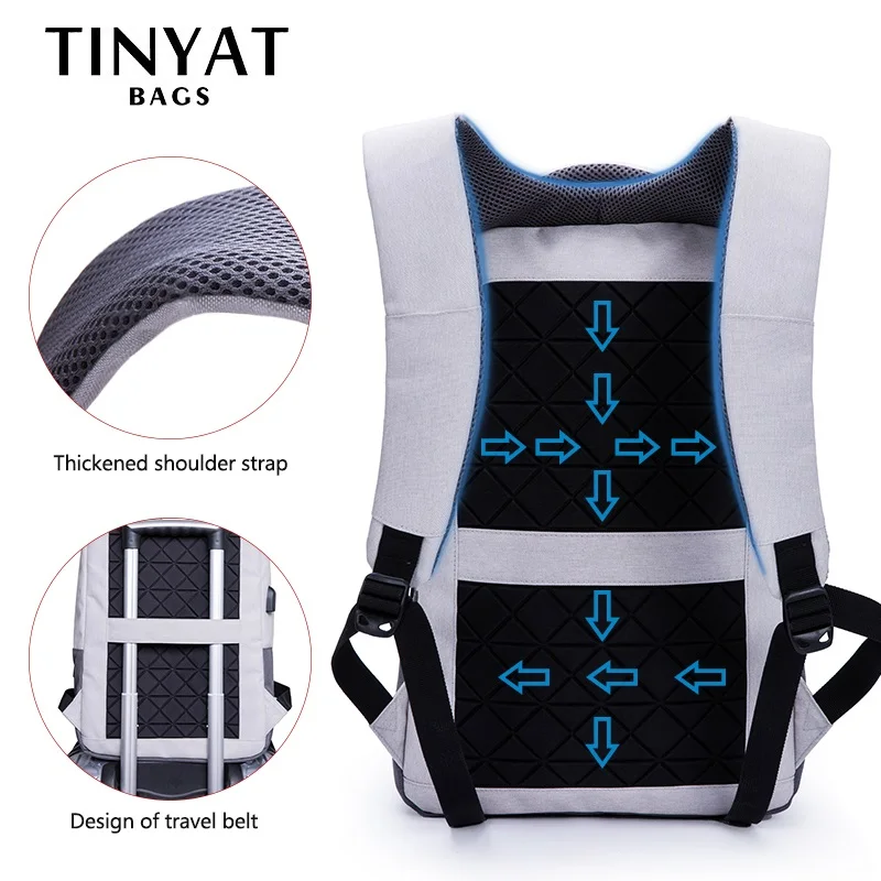 Мужской рюкзак для ноутбука TINYAT, рюкзак для ноутбука с диагональю 15,6 дюймов с подзарядкой через USB-порт, сумка для компьютера с защитой от кражи, школьный портфель, женская сумка для путешествий