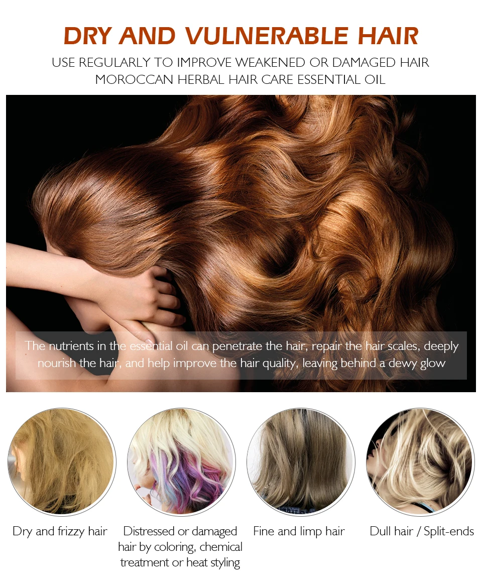 Эссенция для роста волос VIBRANT GLAMOUR, Марокканское эфирное масло, жидкость, Лечение выпадения, повышение гладкости, уменьшение сухости, уход за волосами