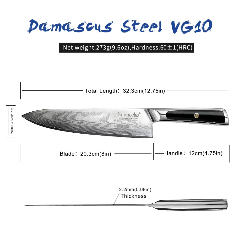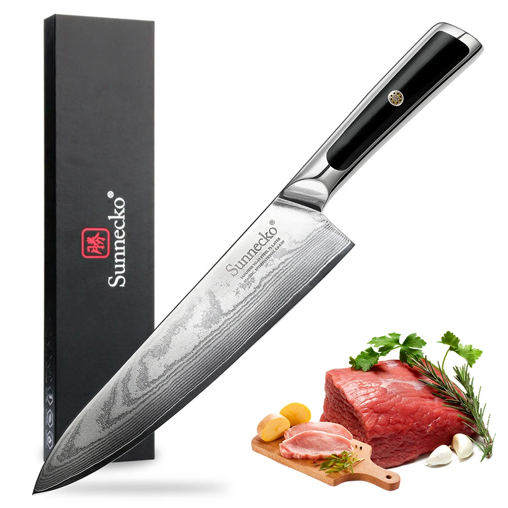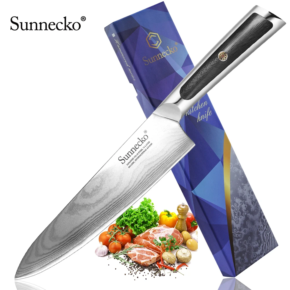 Нож шеф-повара Sunnecko VG10, профессиональная японская лезвие из дамасской стали 8 дюймов, 73 слоя, острый прибор с рукояткой из G10, для шеф-повара