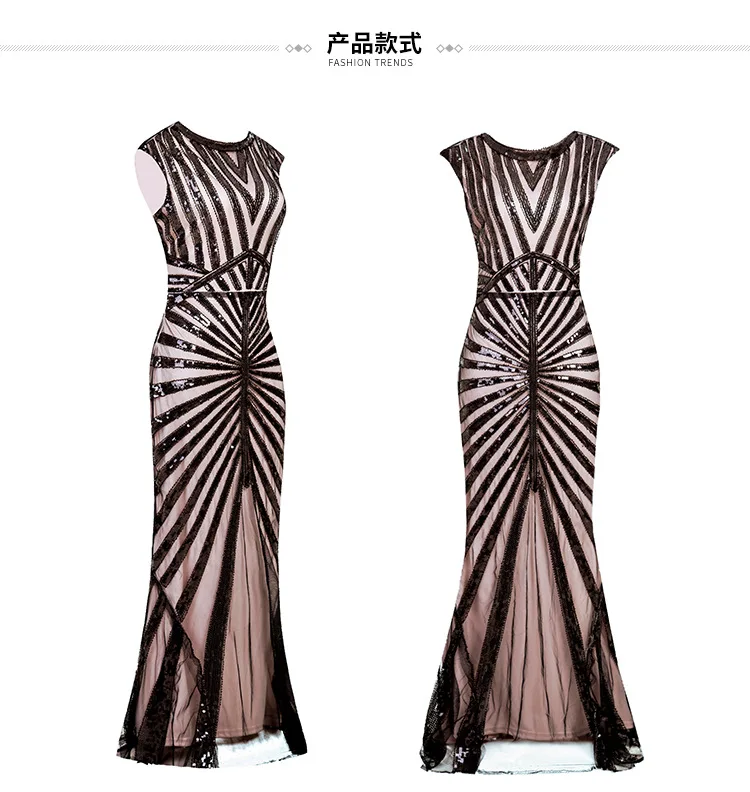 Женское длинное платье в стиле Гэтсби, винтажное Вечернее Платье макси с круглым вырезом, без рукавов, с открытой спиной, для выпускного вечера, 1920