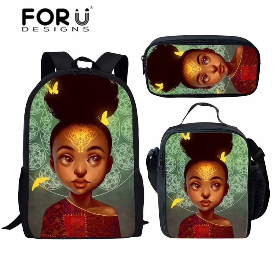 Детские школьные ранцы FORUDESIGNS, черные школьные ранцы для африканских девочек, школьный рюкзак для детей, сумка на плечо, школьный портфель для студентов, школьный рюкзак