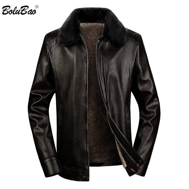 Мужская куртка BOLUBAO из искусственной кожи, зимняя брендовая мужская кожаная куртка, деловая повседневная кожаная куртка (съемный меховой воротник)