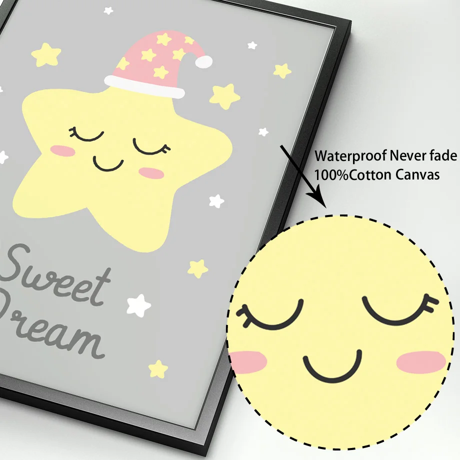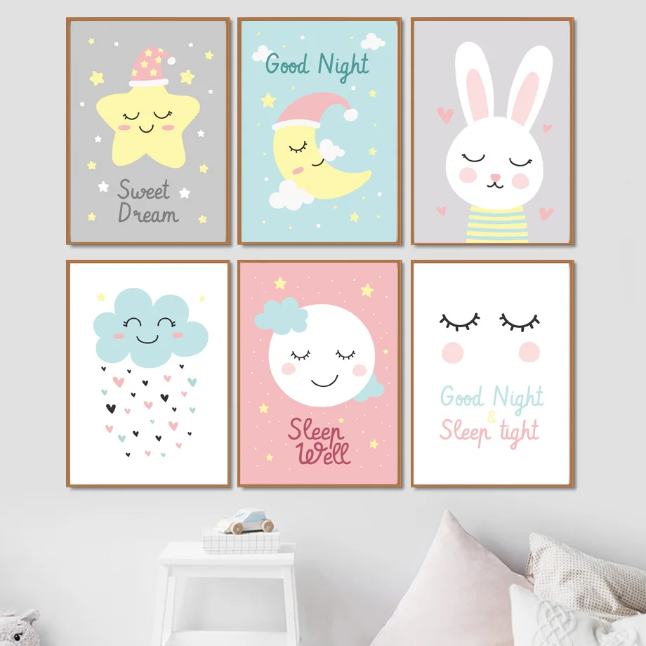 Мультфильм Звезда Луна облако кролик хорошая ночь стены Искусство Холст живопись плакаты на скандинавскую тему и принты настенные картины Детские комнаты декор
